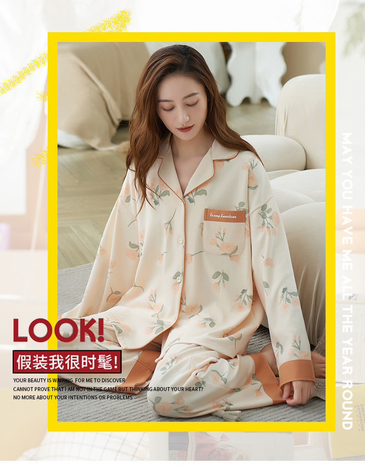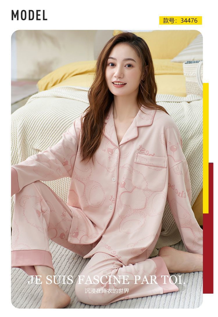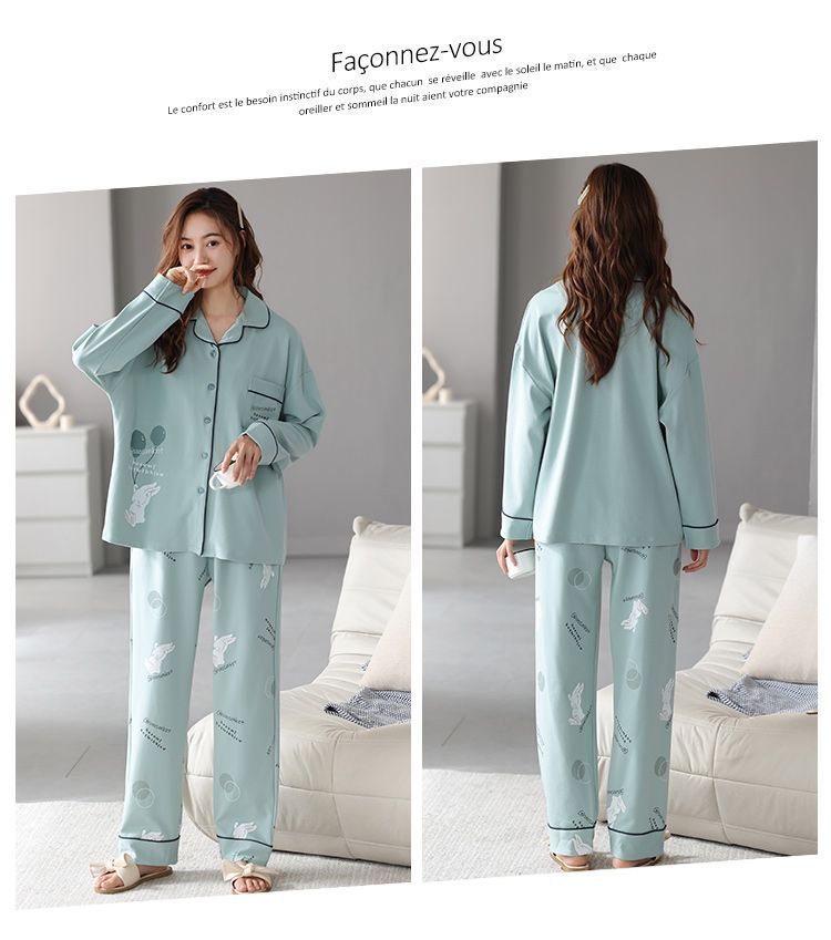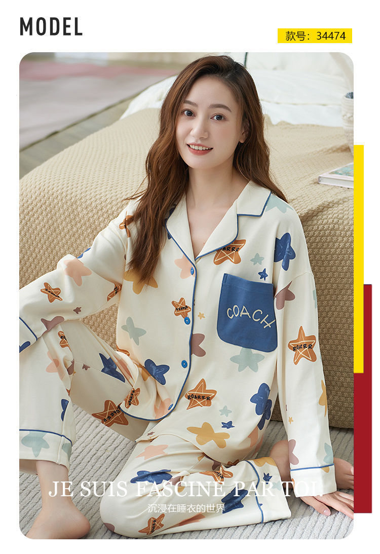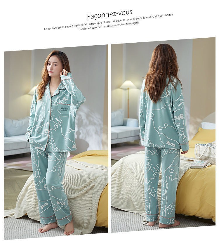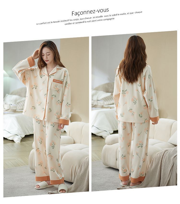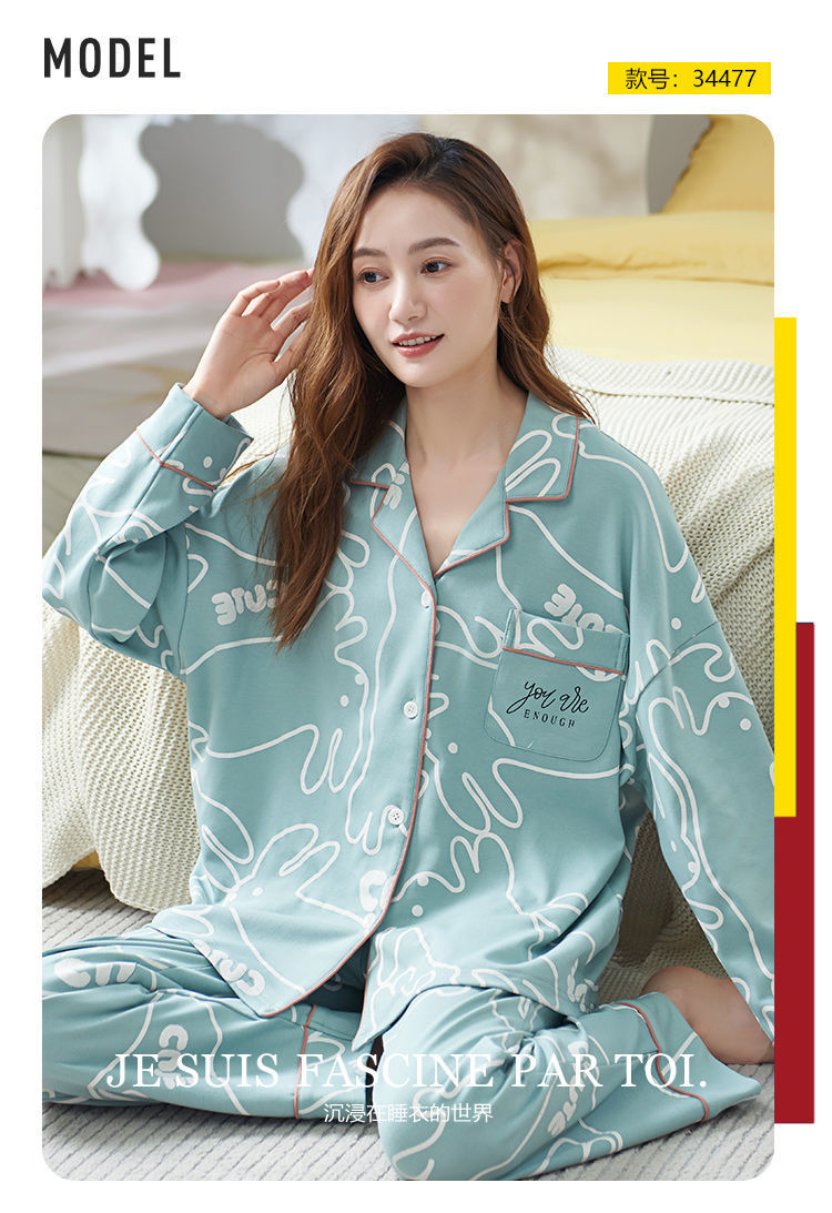 잠옷 여자의 봄과 가을 100% 면 긴 소매 달콤한 한국어 느슨한 플러스 사이즈 면 겉옷 가정 옷스토어 가기