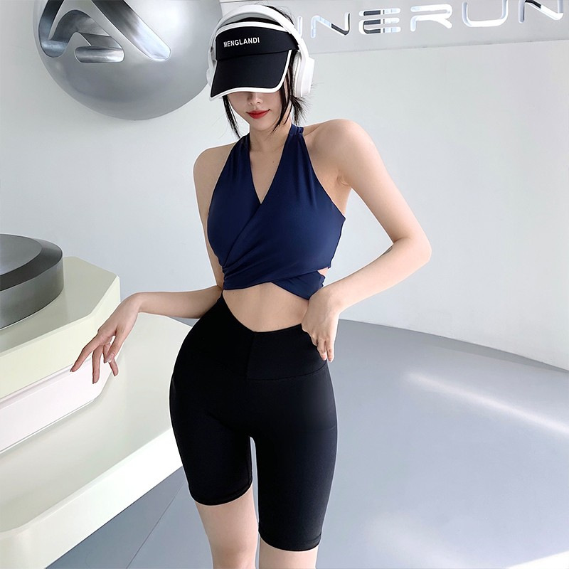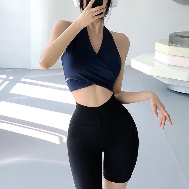 가슴 패드가있는 스포츠웨어 여름 얇은 야외 아침 달리기 아름다운 등 조끼 여성용 여름 목 필라테스 피트니스 V-넥 티셔츠스토어 가기