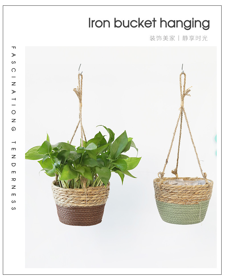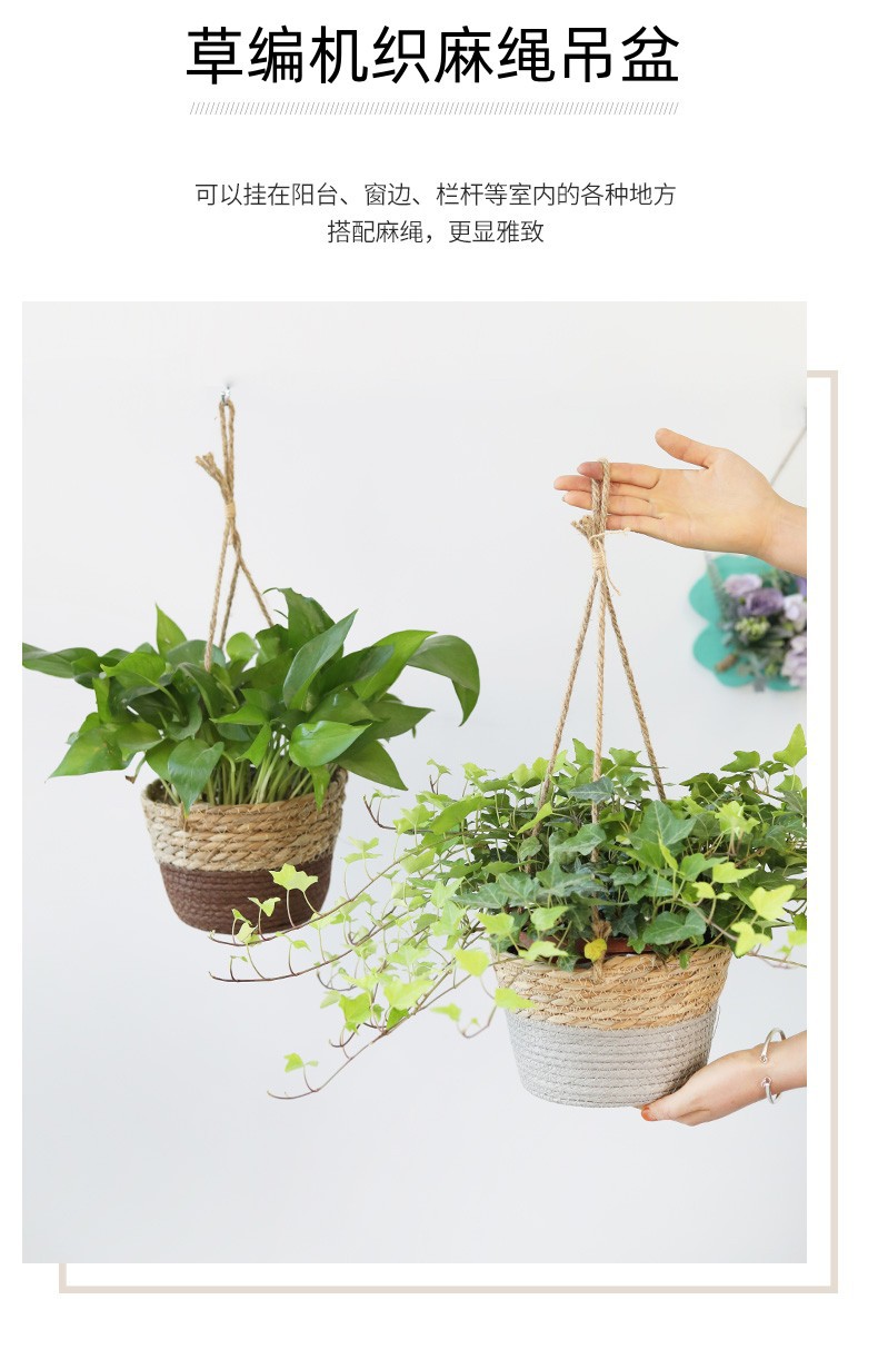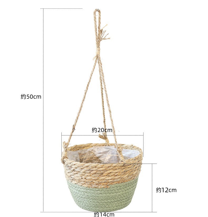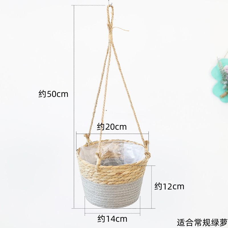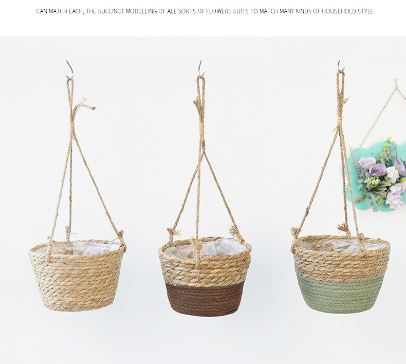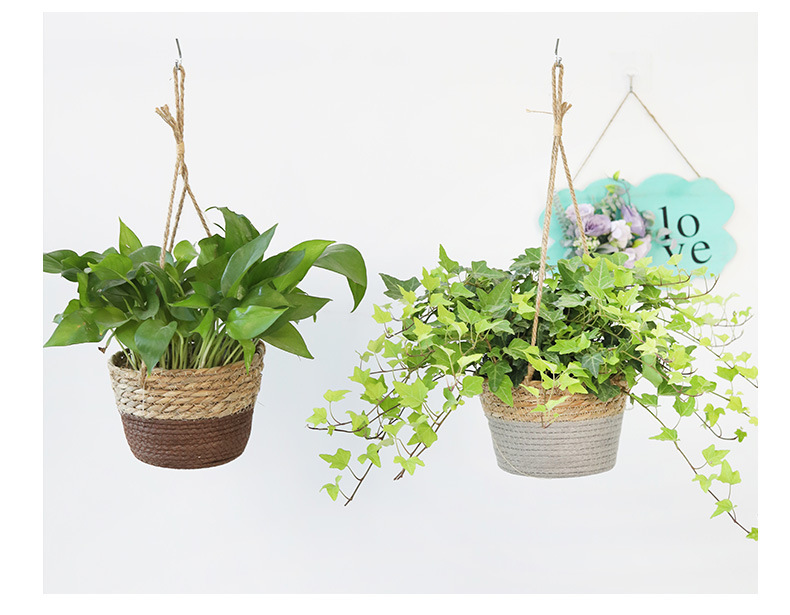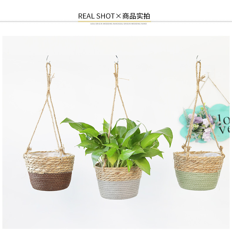 아마존 밀짚 화분 걸이바구니, 화분 걸이, 걸이형 화분, 가정용 땋은 바구니 걸이화분
