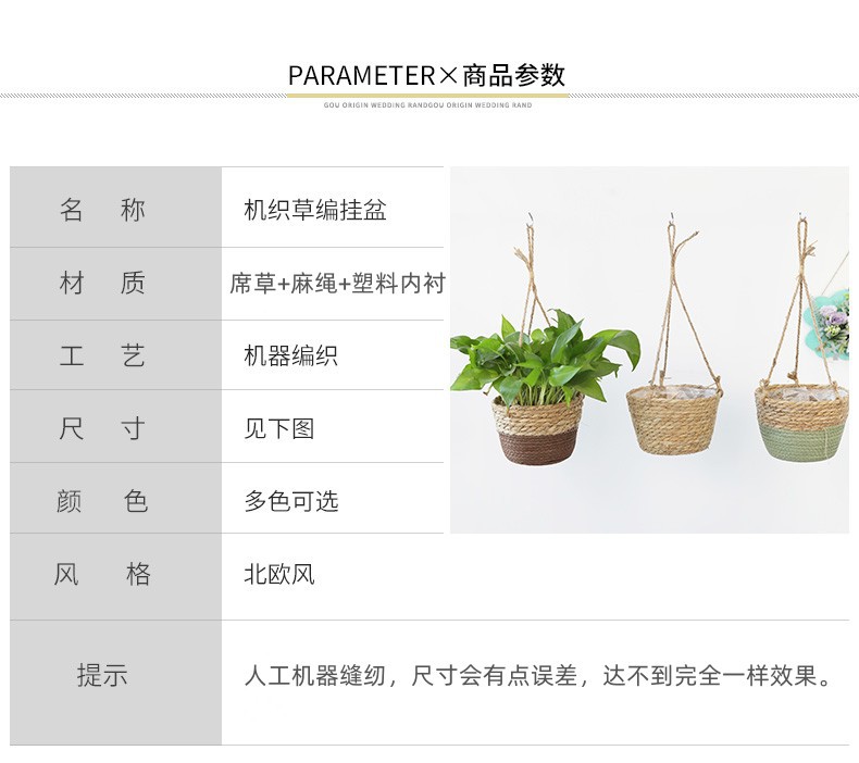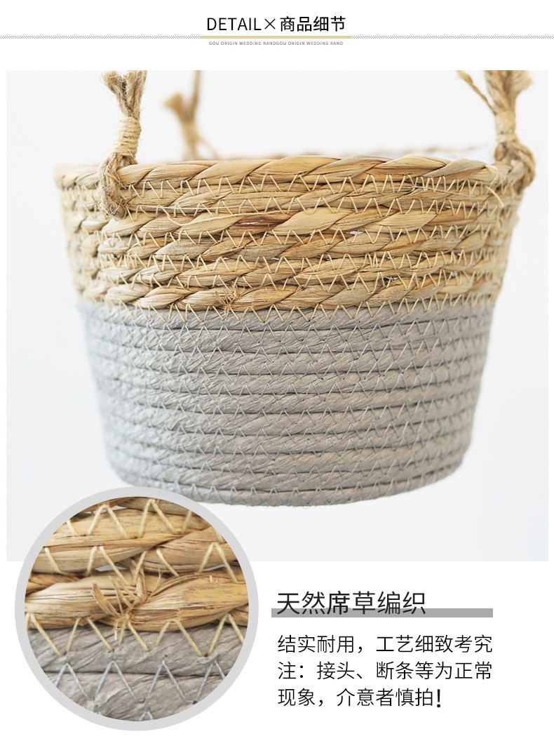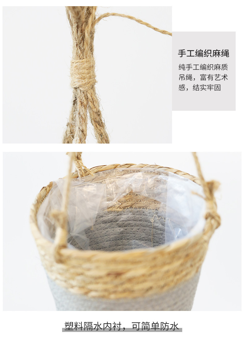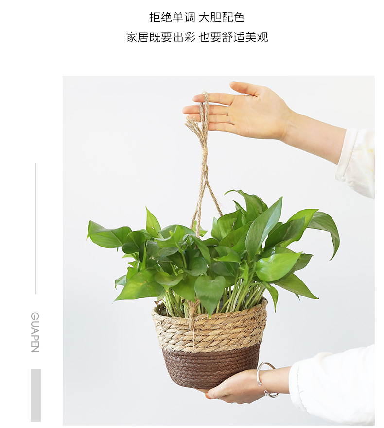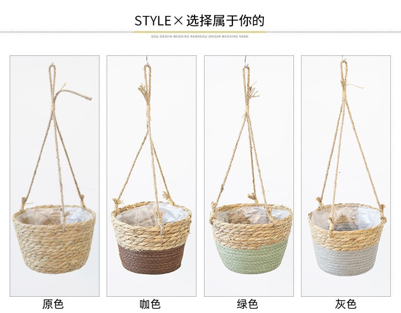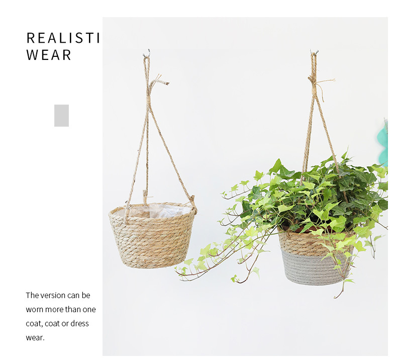 아마존 밀짚 화분 걸이바구니, 화분 걸이, 걸이형 화분, 가정용 땋은 바구니 걸이화분