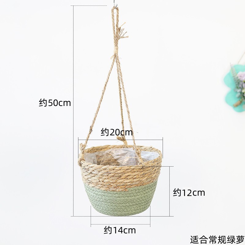 • 밀짚 마 로프 교수형 분지 그린 [입 폭 20cm]