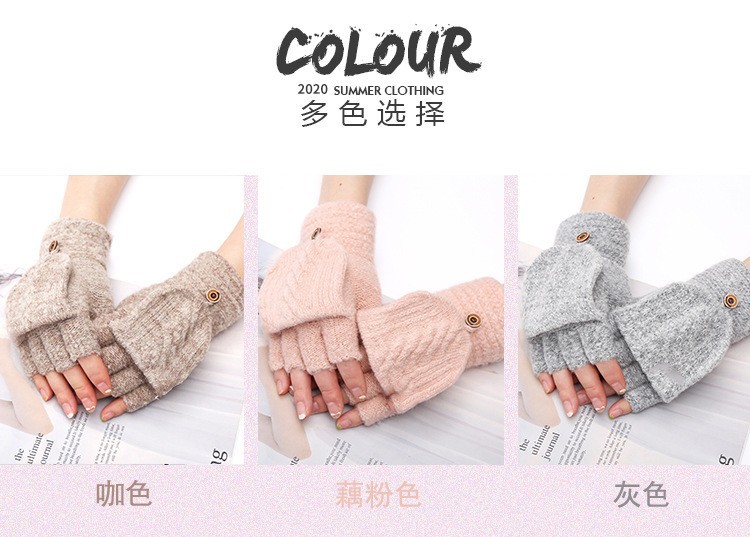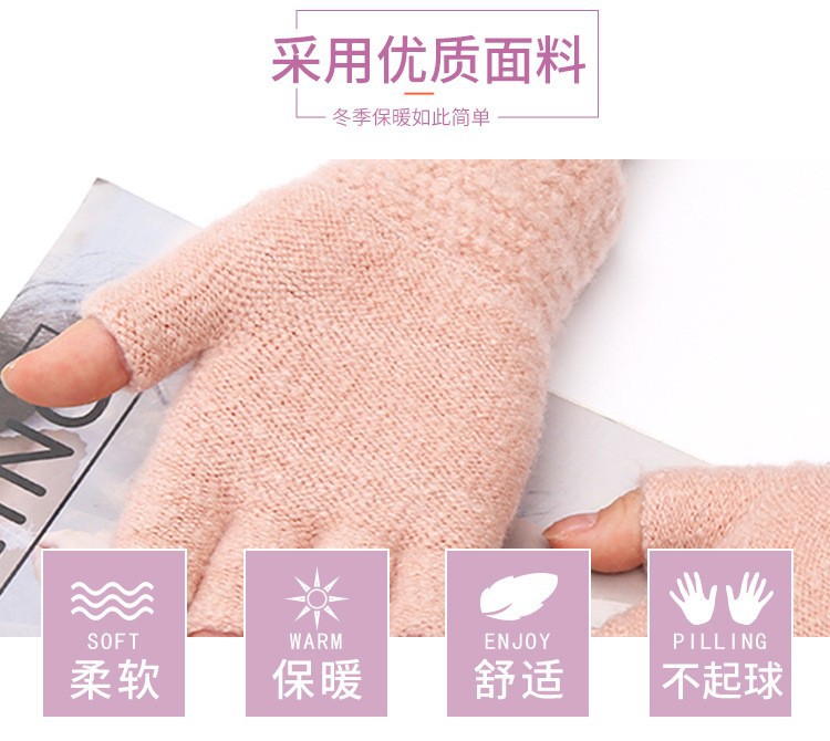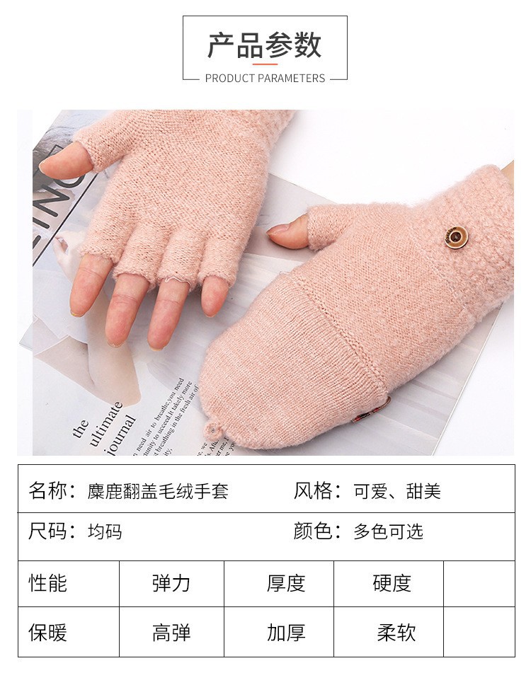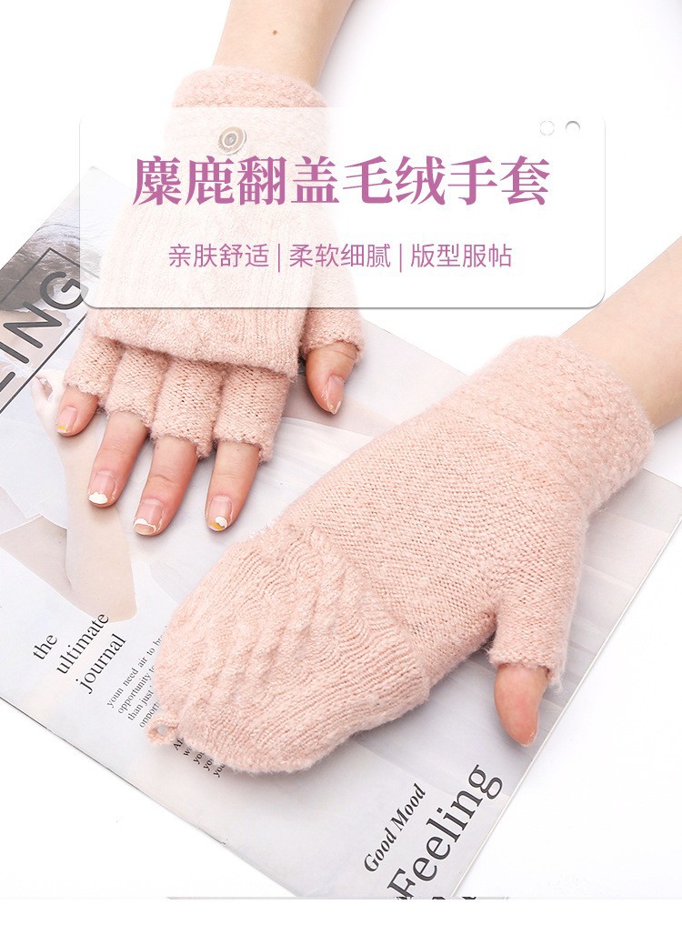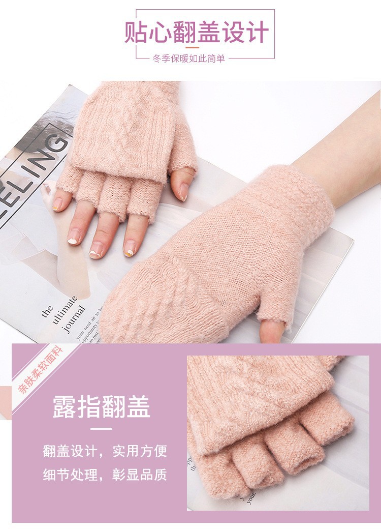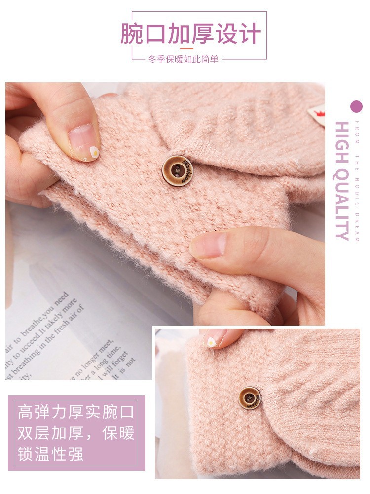 2025 자수 장갑 신상 학생 장갑 캐시미어 반손가락 플립업 장갑 커플 니트 자카드 보온 장갑스토어 가기
