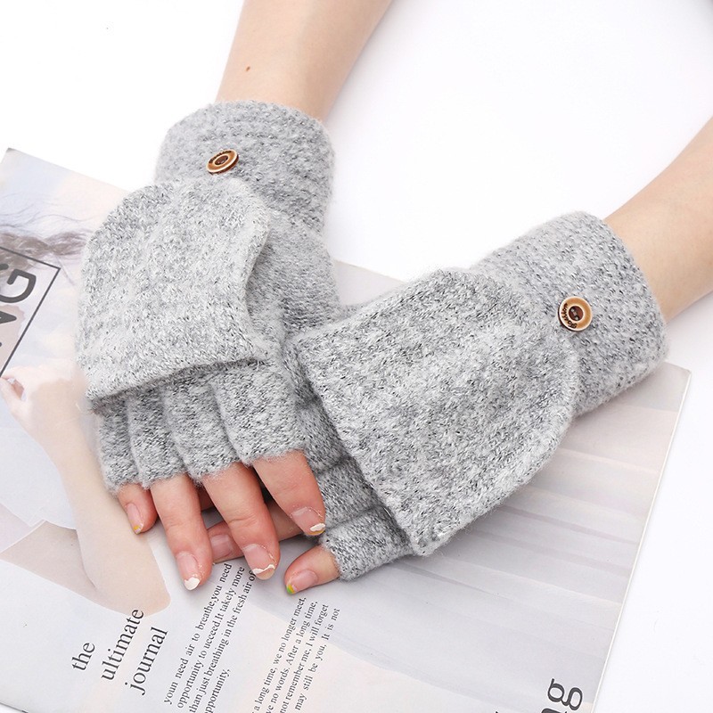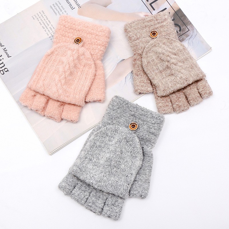 2025 자수 장갑 신상 학생 장갑 캐시미어 반손가락 플립업 장갑 커플 니트 자카드 보온 장갑