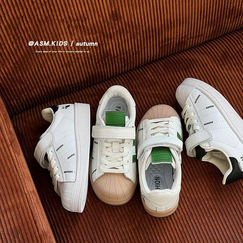 시아 멩 어린이 신발 2023 가을 새 어린이 부드러운 단독 흰색 신발 소년과 소녀 벨크로 로우 탑 캐주얼 보드 신발스토어 가기