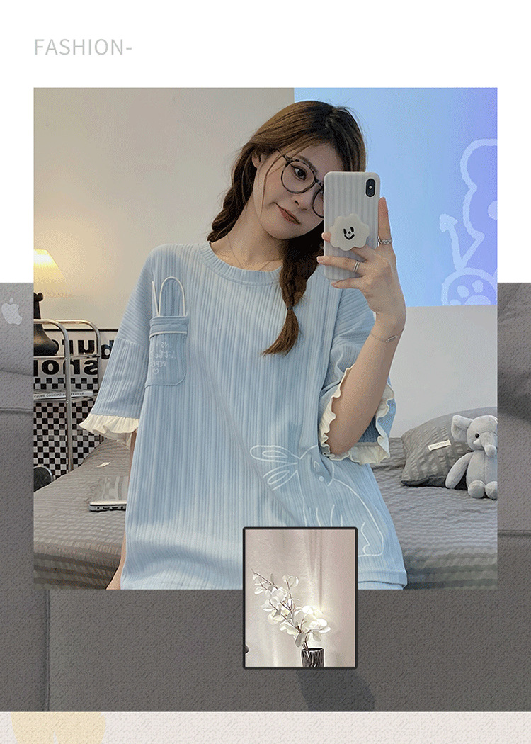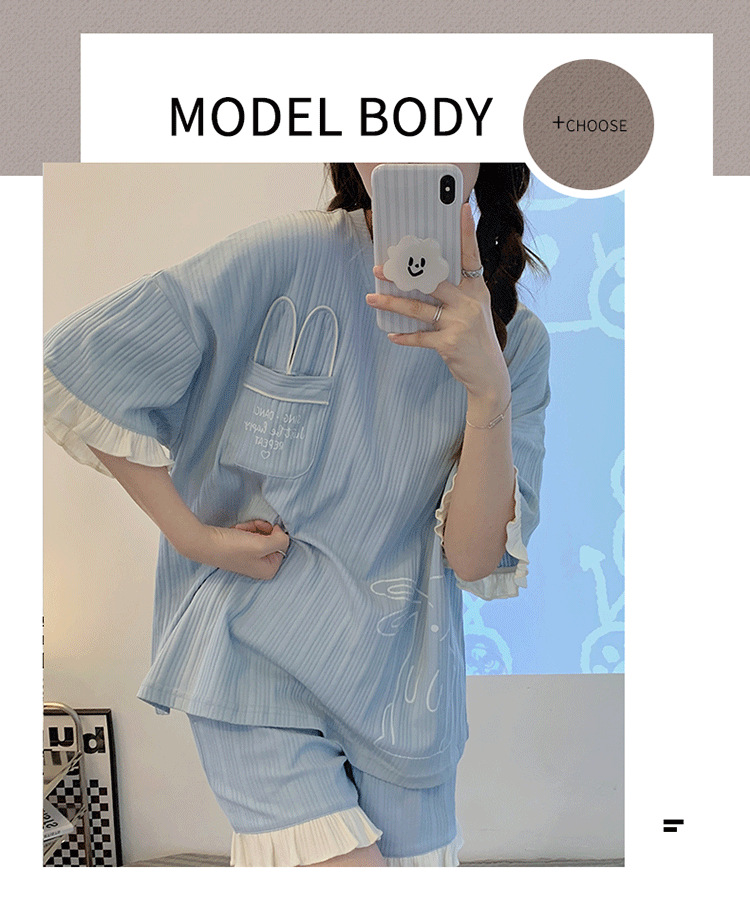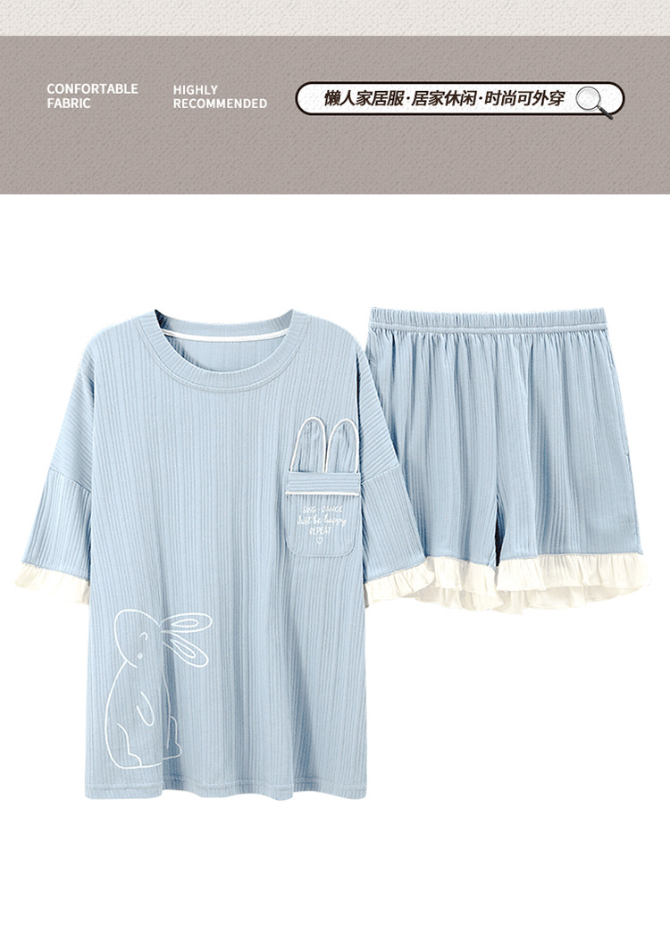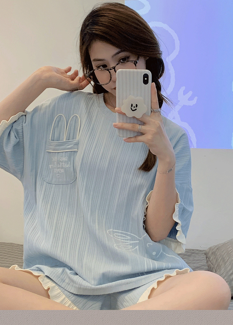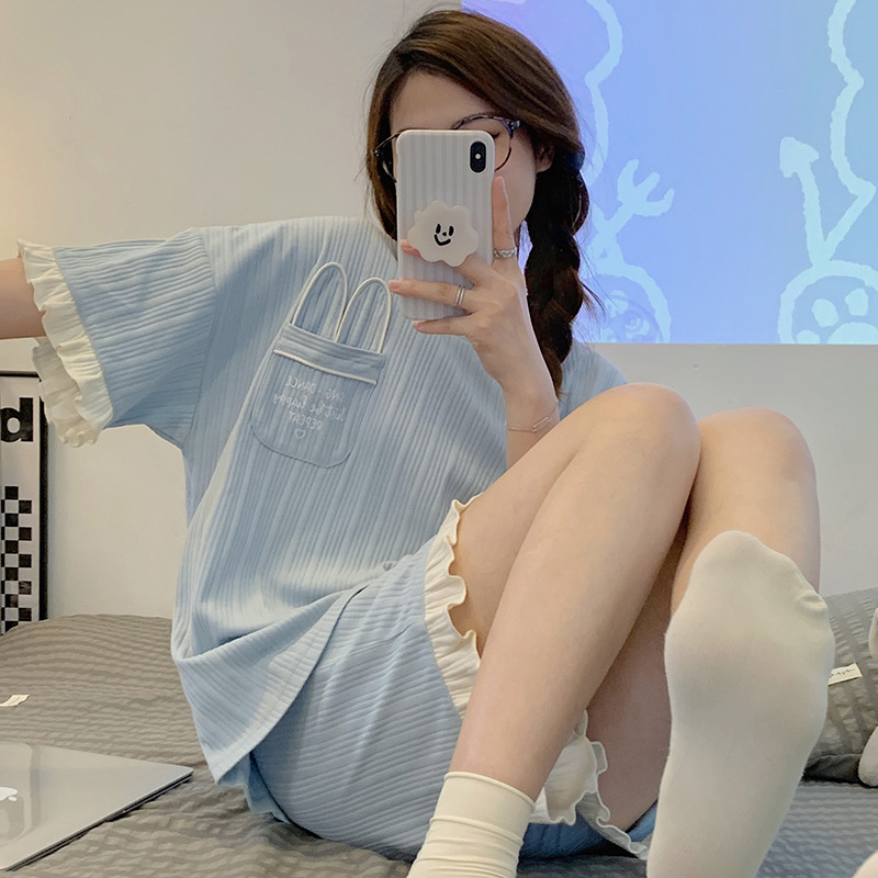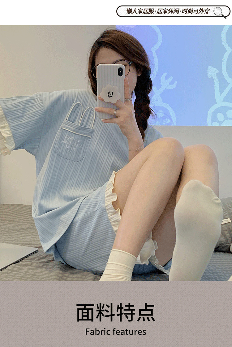 2024 년 여름 새로운 잠옷 여성 여름 반팔 반바지 세트 달콤한 패션 캐주얼 느슨한 외부