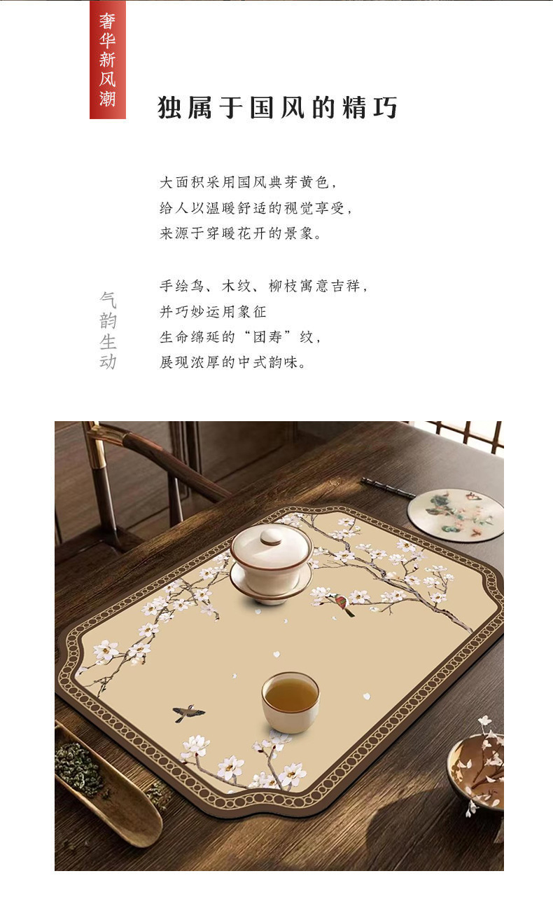 티 매트 젠 흡수성 속건 미끄럼 방지 티 테이블 다도 찻잔 내마모성 뉴 중국 규조 진흙 배수 매트 코스터