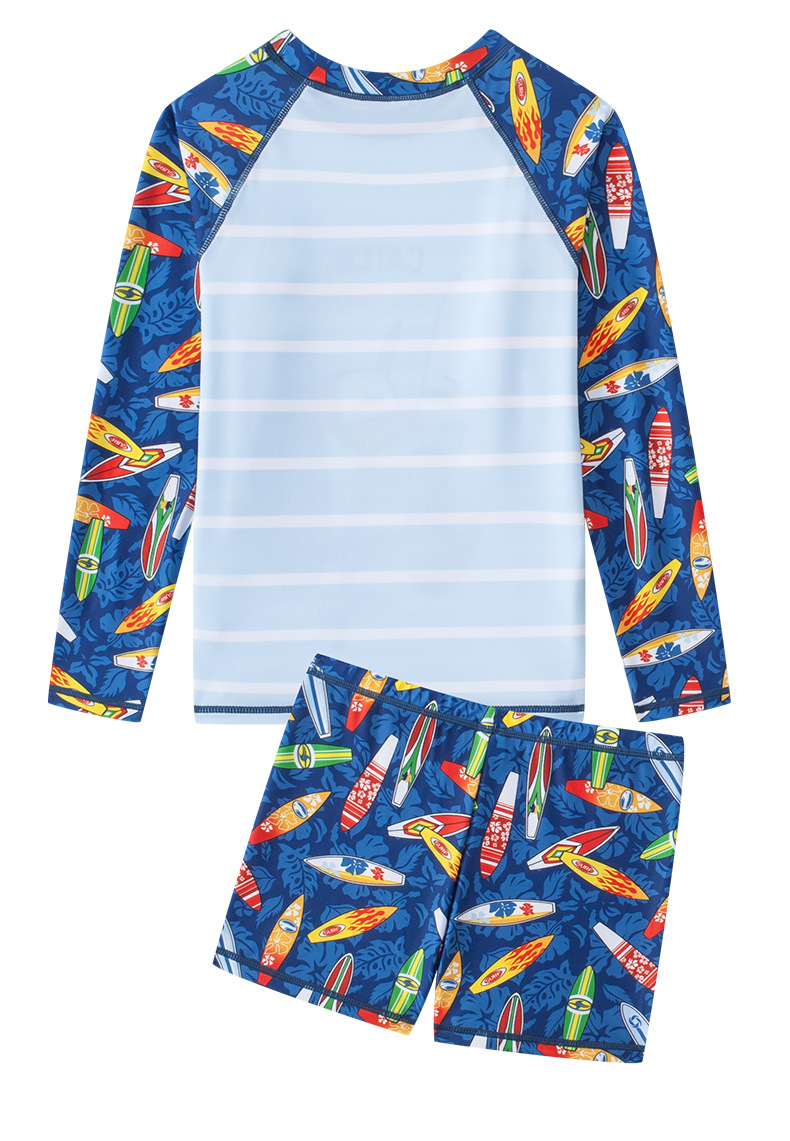 어린이용 긴팔 반바지 수영복 세트, 남아용 투피스 배색 수영복, 아동용
