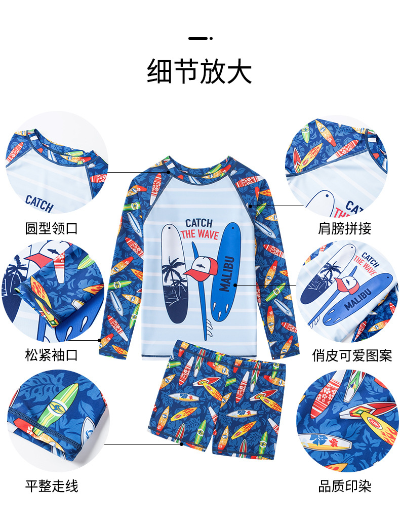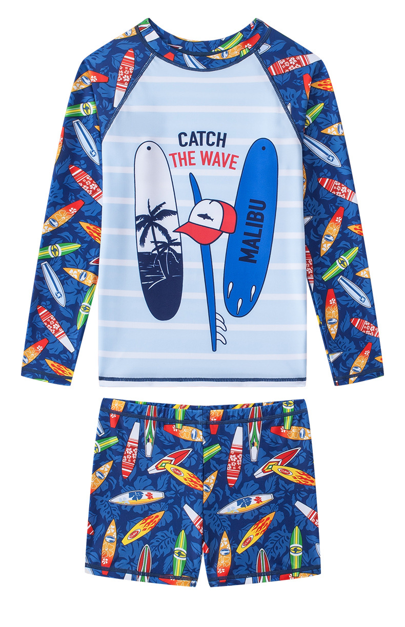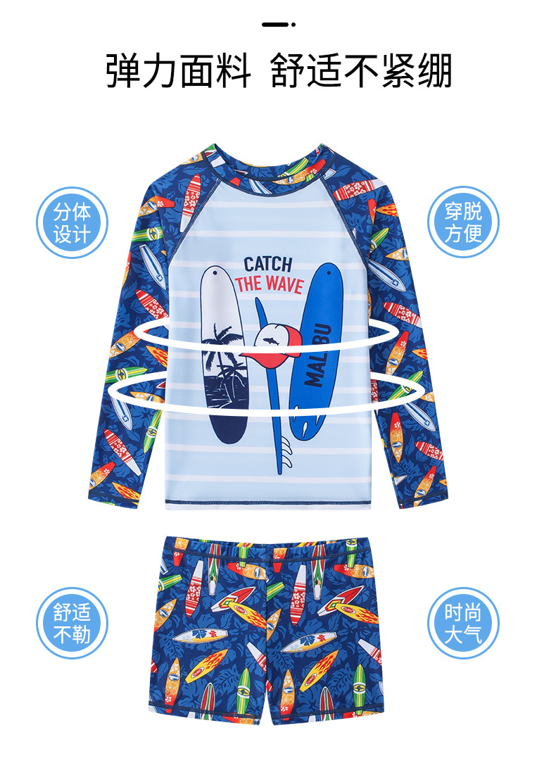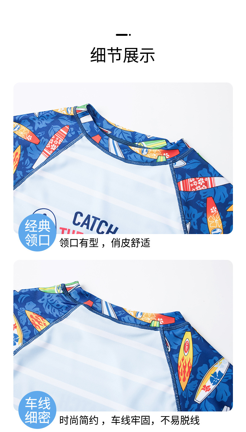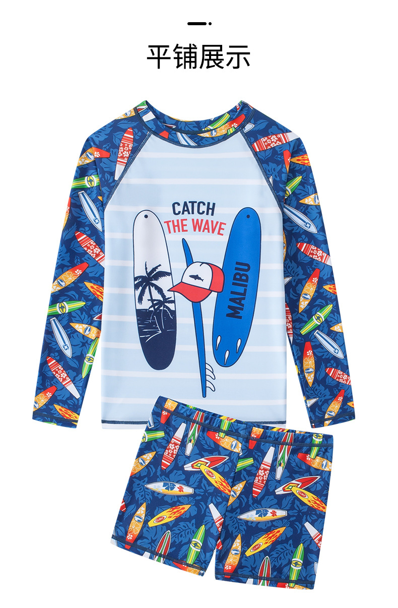 어린이용 긴팔 반바지 수영복 세트, 남아용 투피스 배색 수영복, 아동용스토어 가기