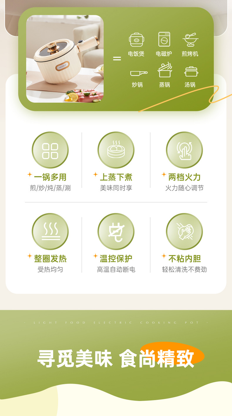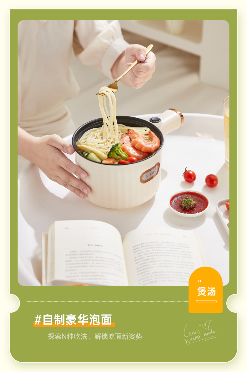 학생 기숙사 전기 쿠킹 포트 다기능 1 인용 인스턴트 라면 냄비 소형 쿠킹 냄비 죽 냄비 소형 파워 논스틱 냄비 110V