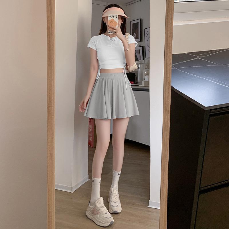 아이스 실크 플리츠 스커트 여성용 여름 하이 웨이스트 슬리밍 힙 커버링 아이스 실크 스커트 안티 러닝 모든 매치 짧은 A-라인스토어 가기