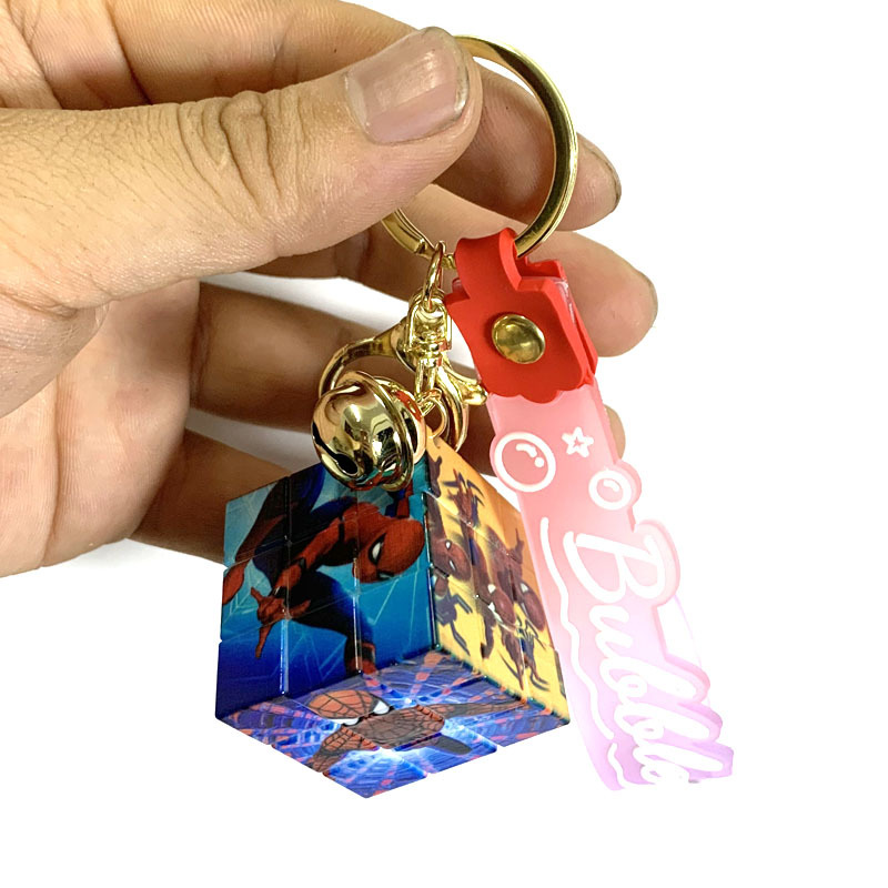 새로운 미니 루빅스 큐브 펜던트 만화 마블 스파이더 맨 회전식 키 체인 가방 장식품 도매스토어 가기