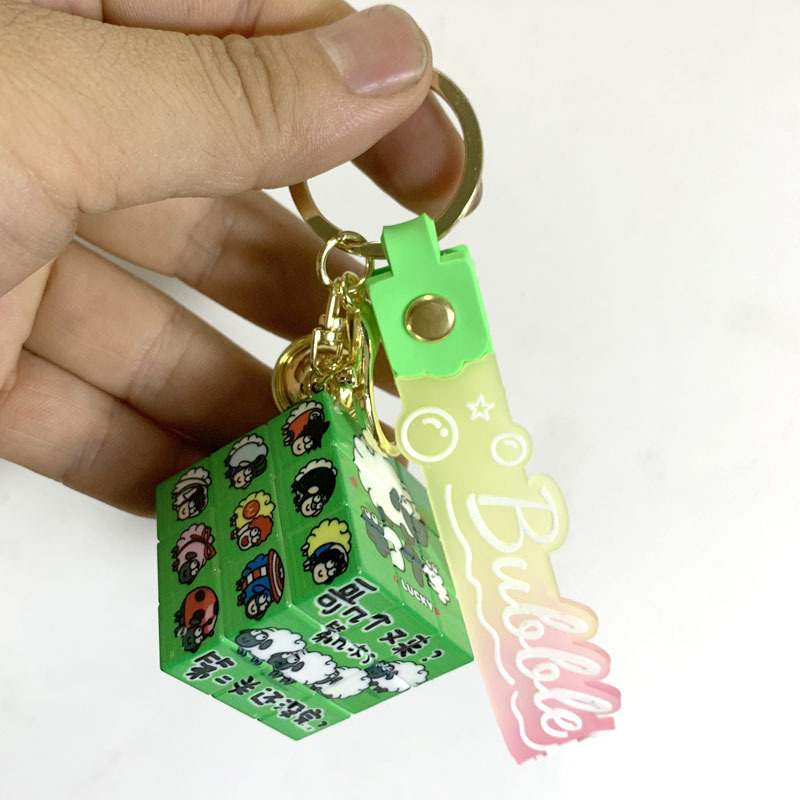• 양에는 루빅스 큐브 키 체인이 있습니다