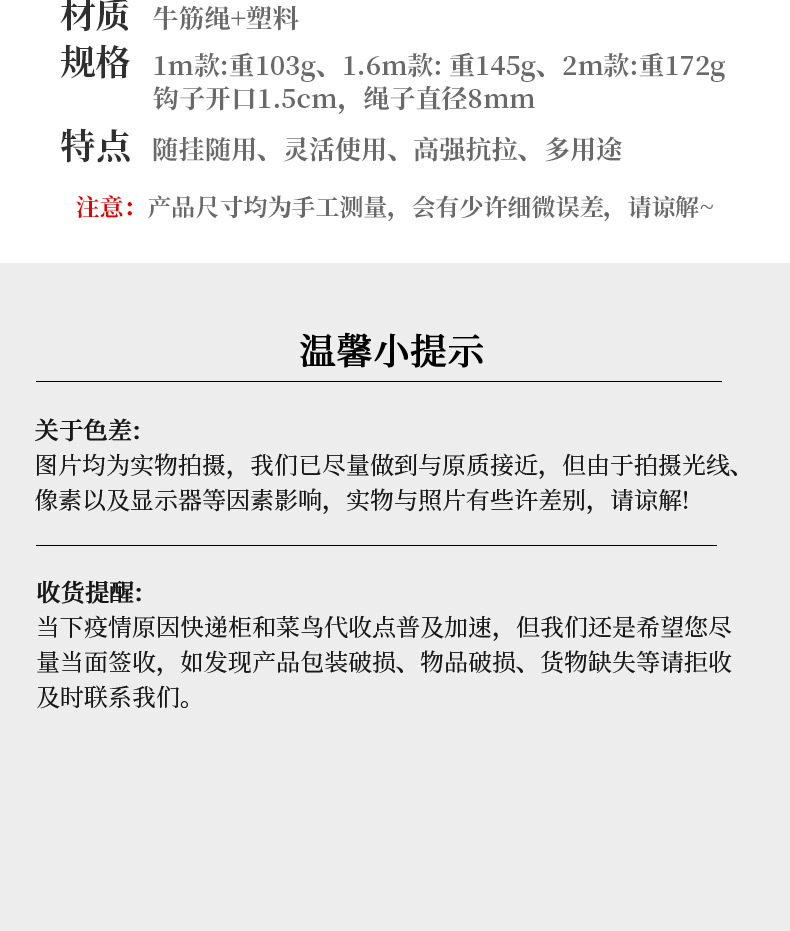 • 플라스틱 이중 후크 탄성 로프 2 m