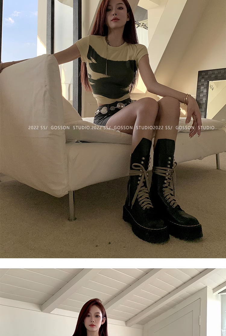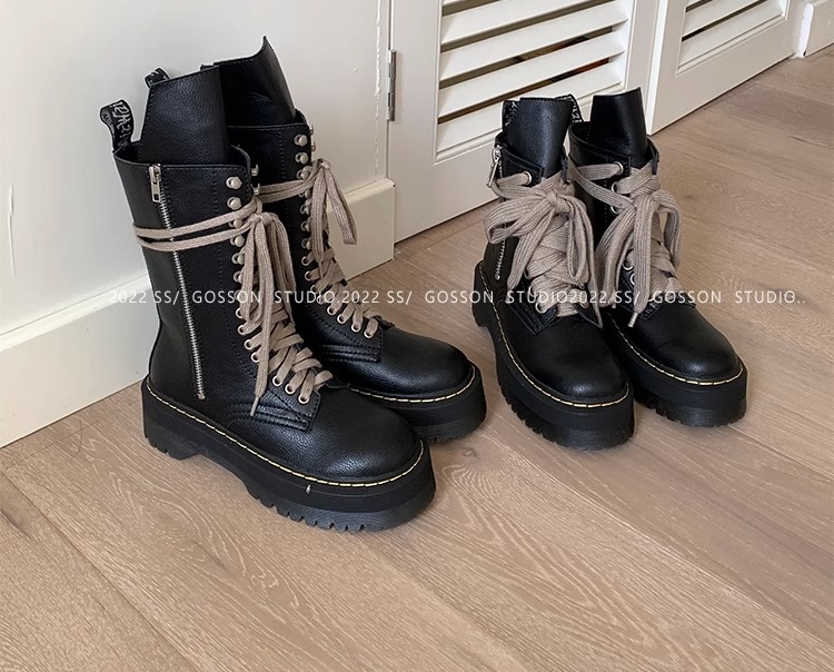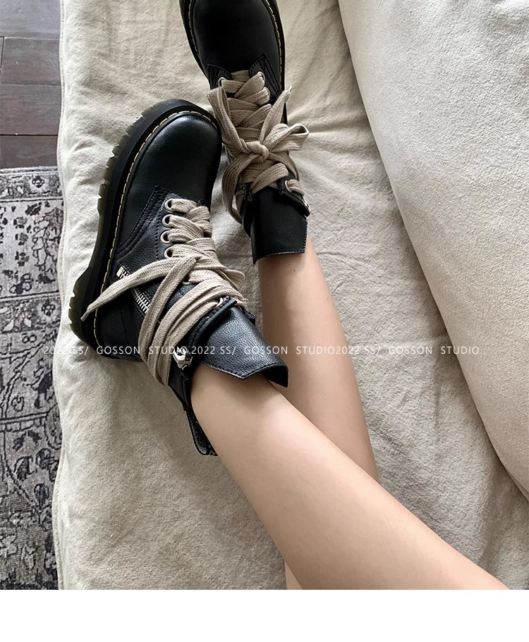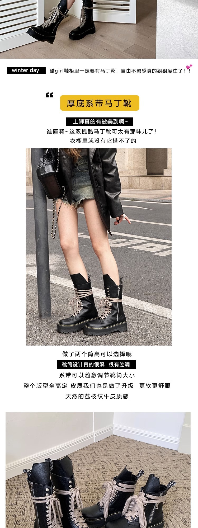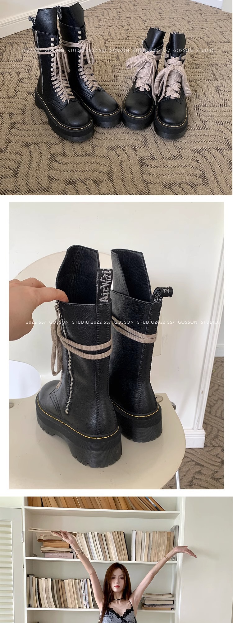 [재고 및 초 단위 배송] 박차이잉과 같은 스타일의 여성용 두꺼운 밑창 마틴 부츠, 영국식 미드카프 오토바이 부츠, 스트랩 숏부츠
