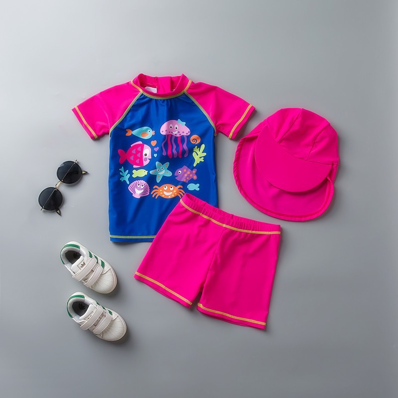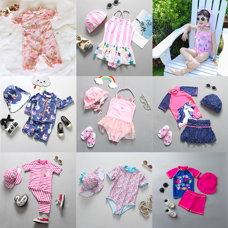 통관 한국 어린이 수영복 여아 자외선 차단제 아기 어린이 따뜻한 속건 서퍼 의류 어린이 수영복 세트