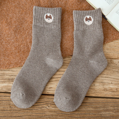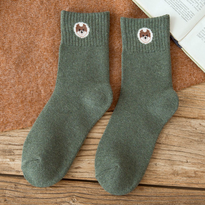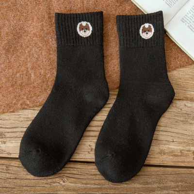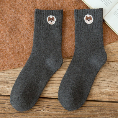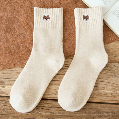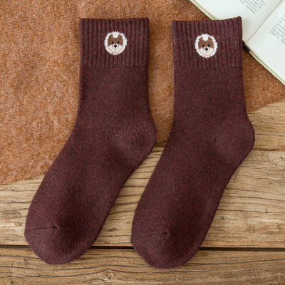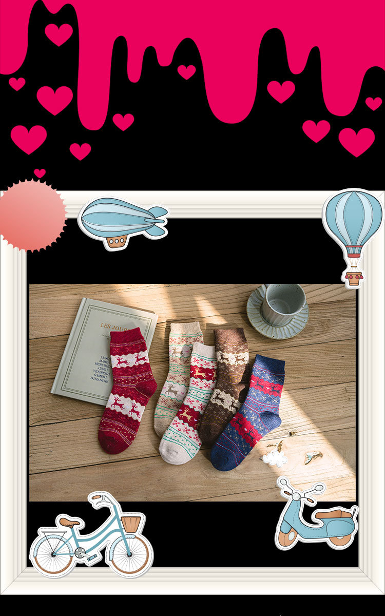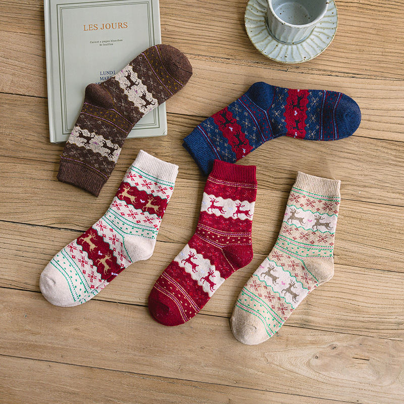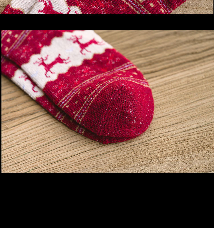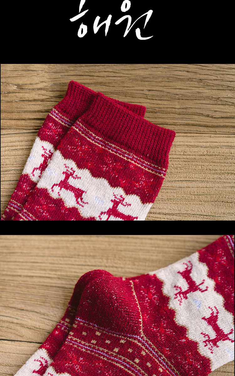 크리스마스 엘크 중간 길이 양말 더블 댄 축제 선물 가을과 겨울 두꺼운면 양말 일본식 귀여운 곰 소녀 따뜻한 양말