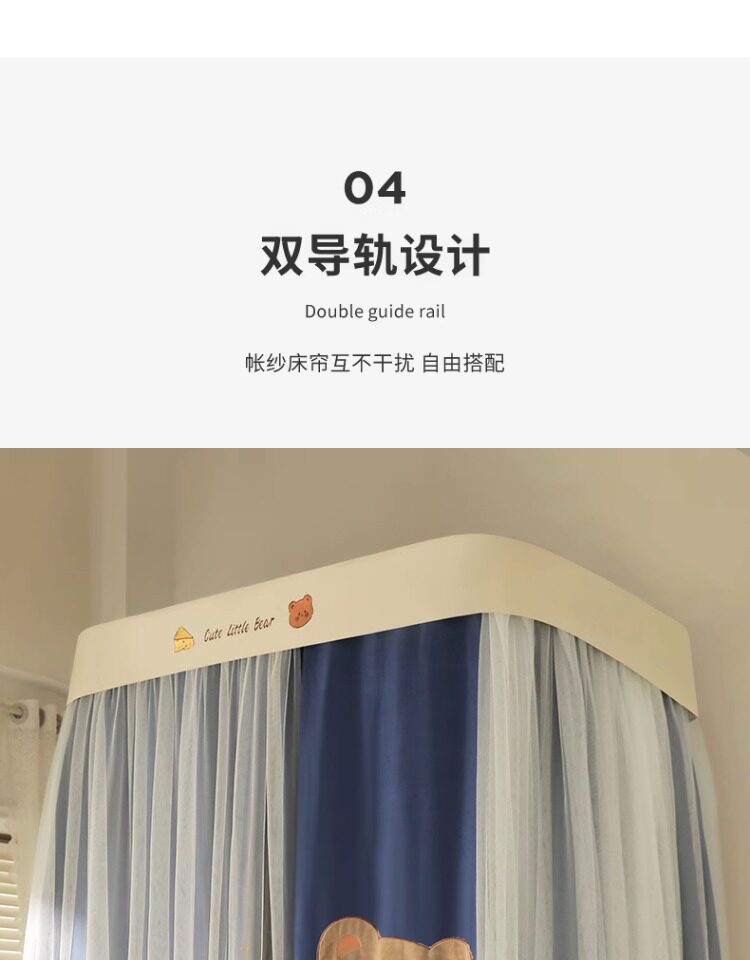 UG73 새로운 U 자형 트랙 베드 커튼 강한 차광 학생 기숙사 상부 커튼 서브 트랙 풀리 모기장 침대