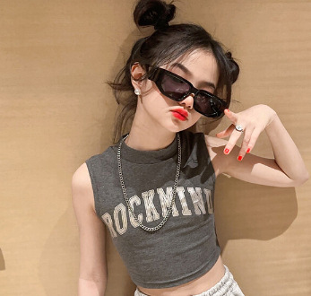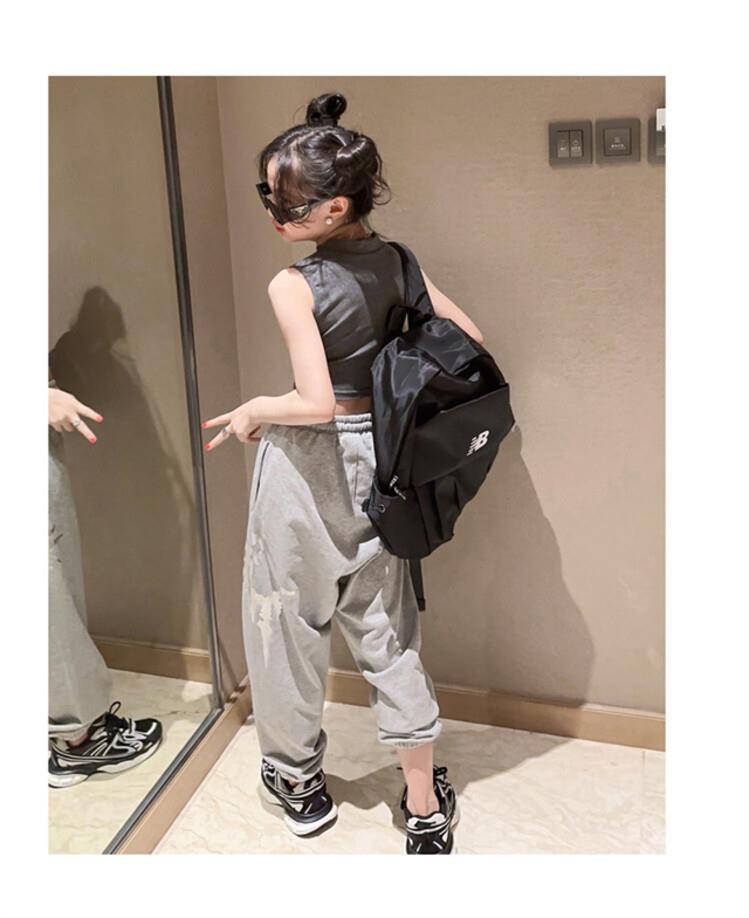 여자 2023 홍콩 스타일 회색 핫 스탬핑 조끼 + 회색 바지 캐주얼 느슨한 바지 도매 한국어 버전스토어 가기