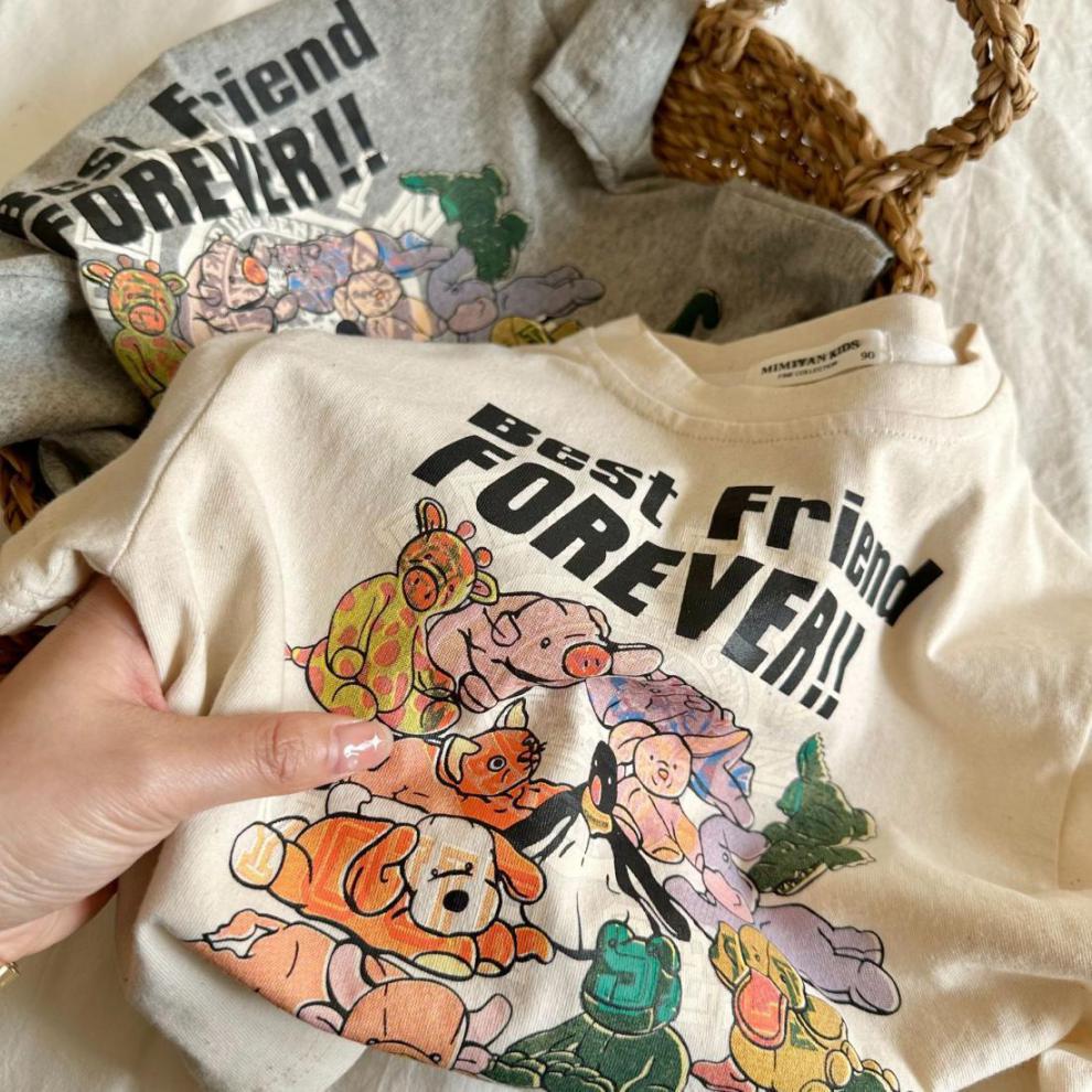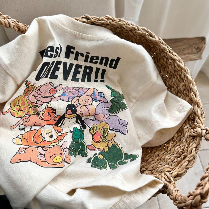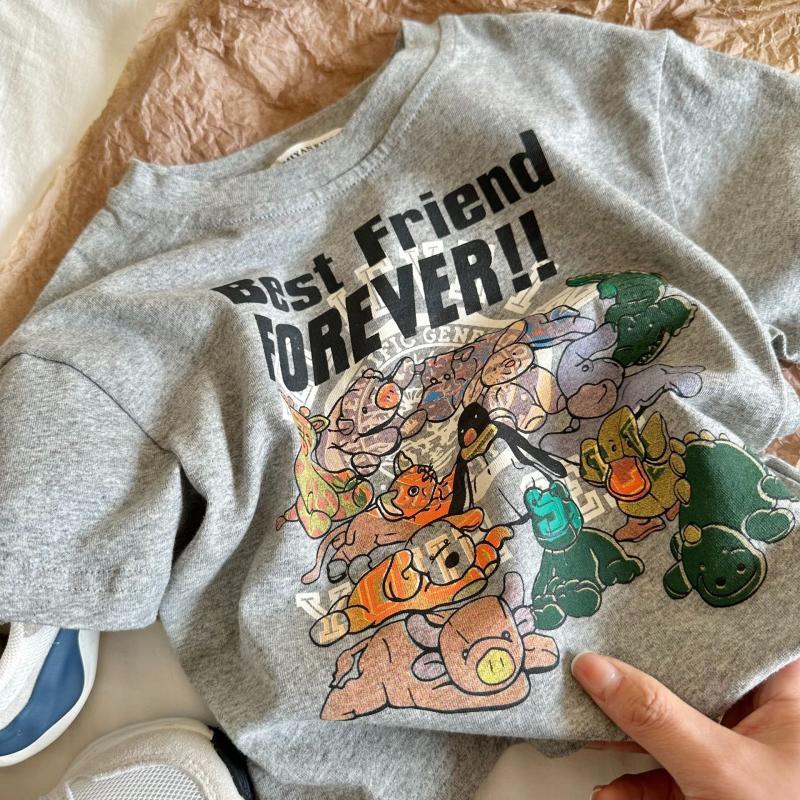 어린이 반팔 티셔츠 남아 만화 동물원 면 소녀의 귀여운 탑 한국 스타일 2023 여름 새로운 유행 티셔츠