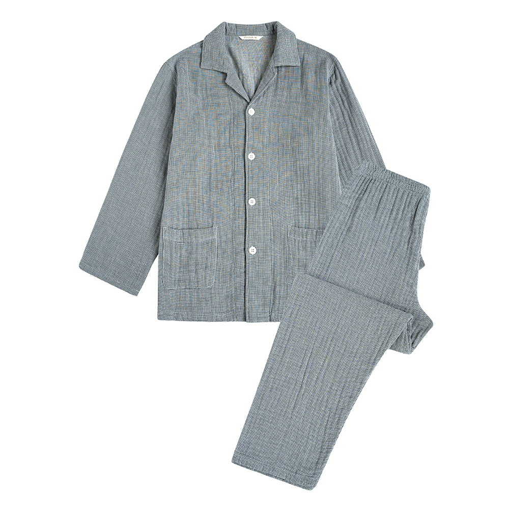 4겹 거즈 순면 긴 가정복 거즈 긴팔 면 편안한 바지 잠옷 봄, 가을 정장 일본식