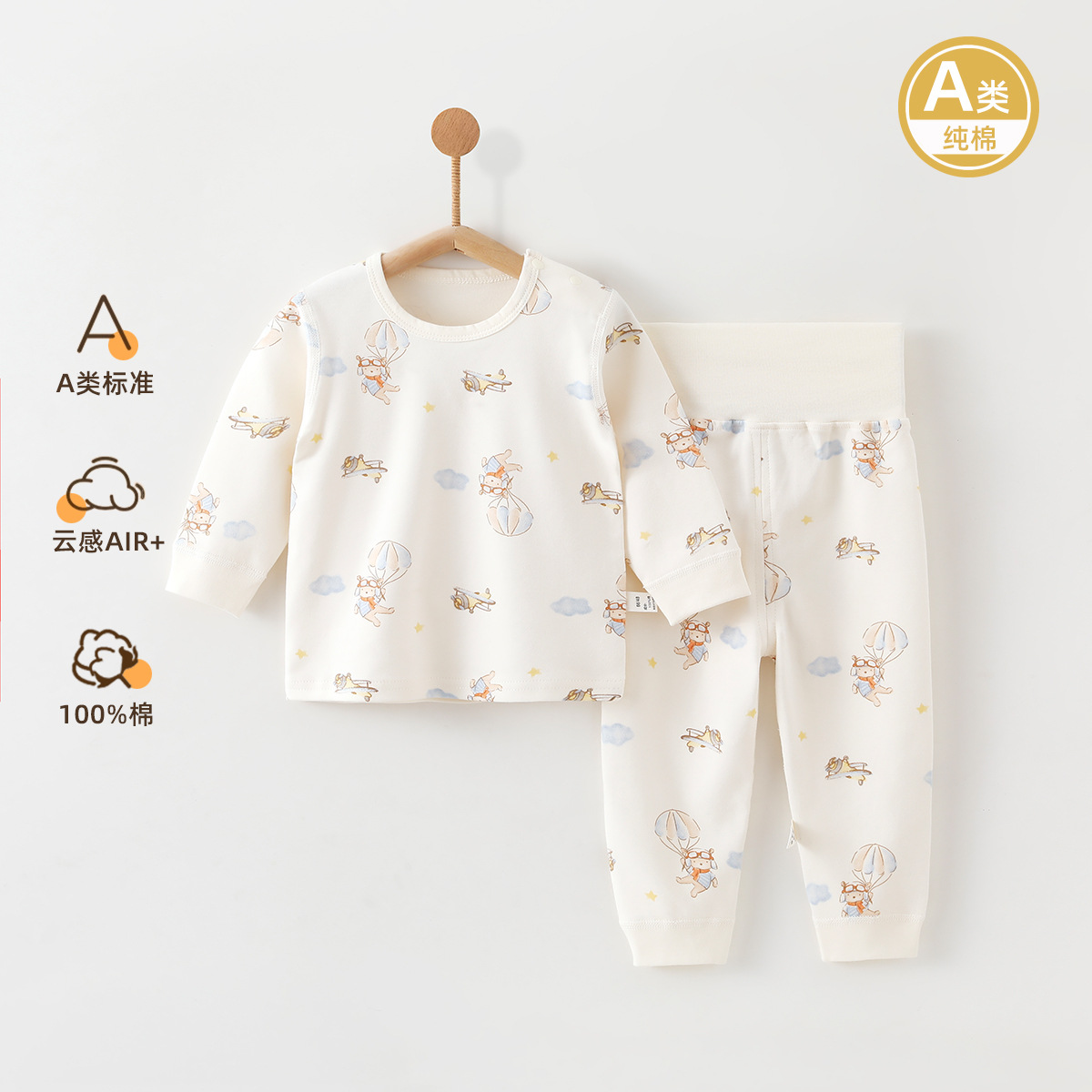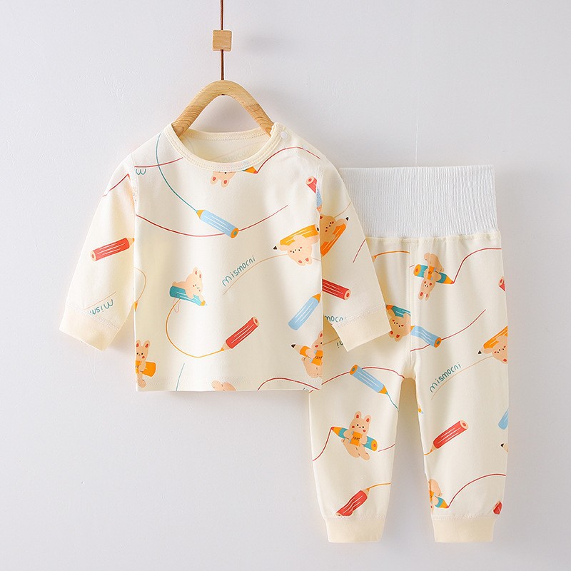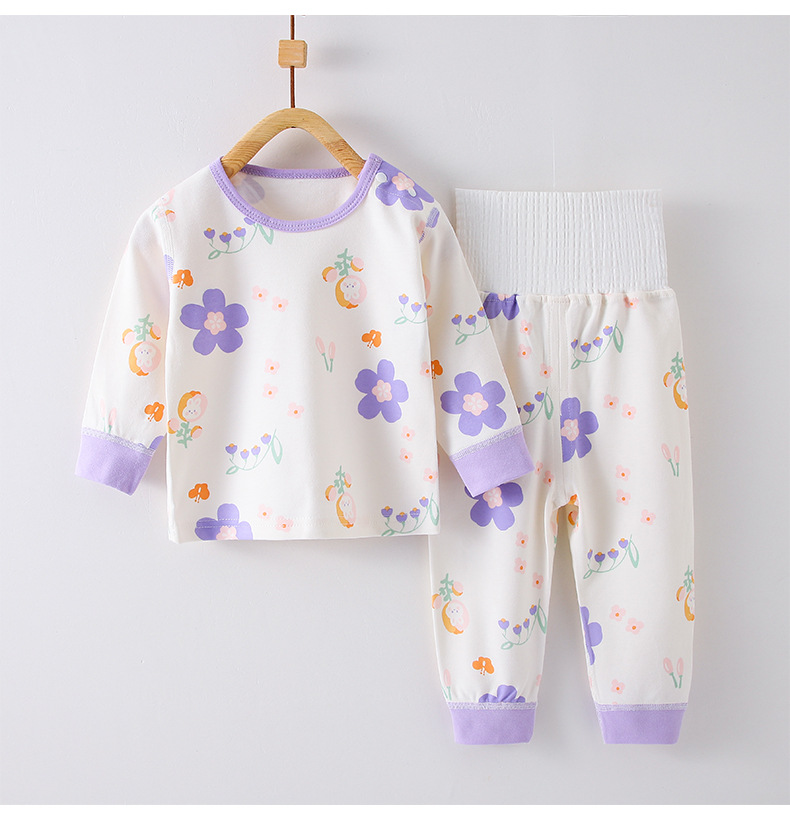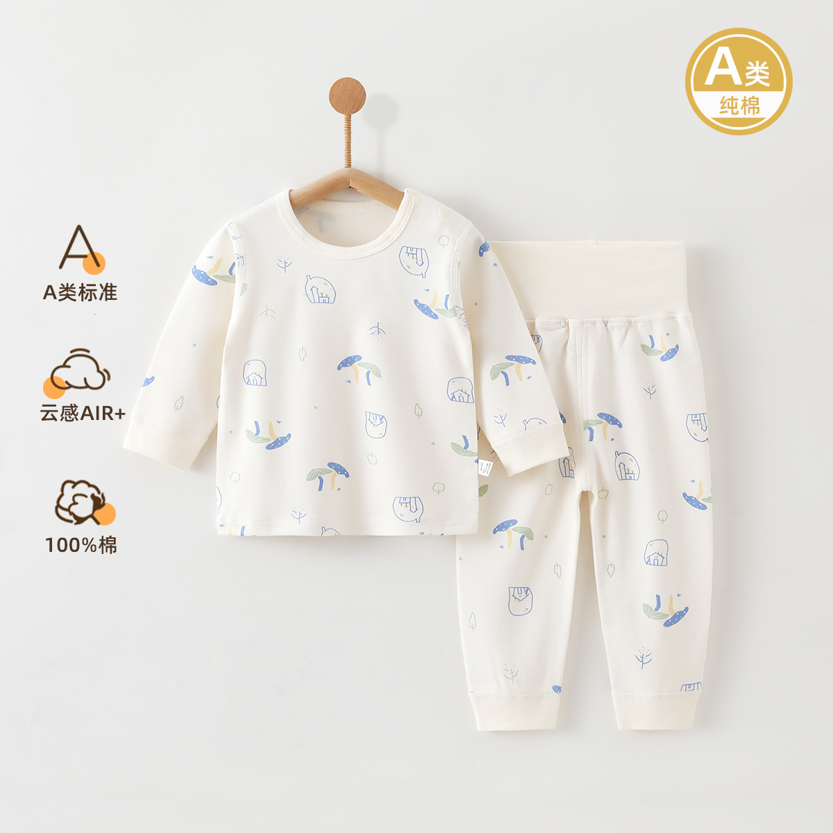 아기 잠옷 클래스 A 순면 봄, 가을 하이 웨이스트 배꼽 보호 가을, 겨울 어린이 스플릿 슈트 아기 가을 옷과 긴 바지 옷