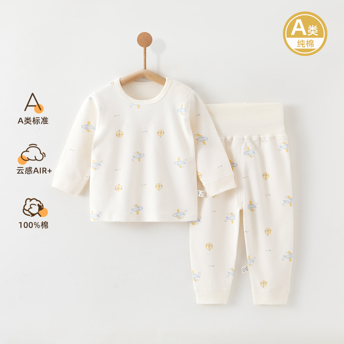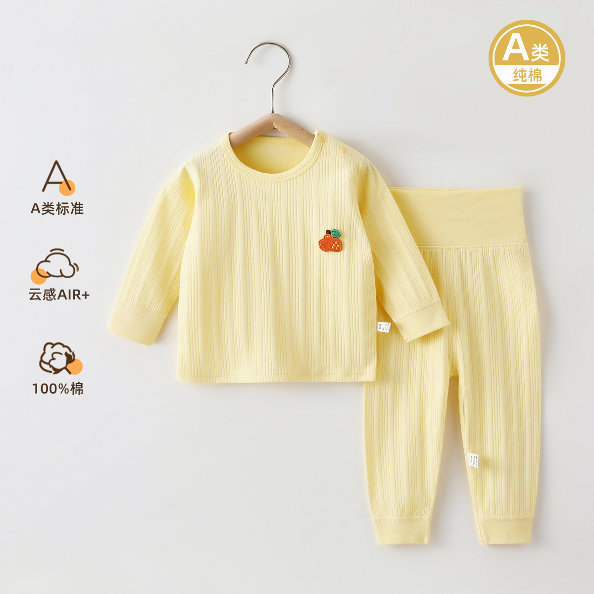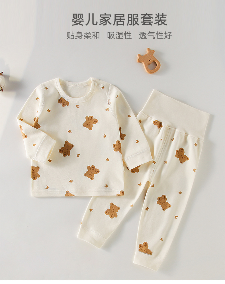 아기 잠옷 클래스 A 순면 봄, 가을 하이 웨이스트 배꼽 보호 가을, 겨울 어린이 스플릿 슈트 아기 가을 옷과 긴 바지 옷