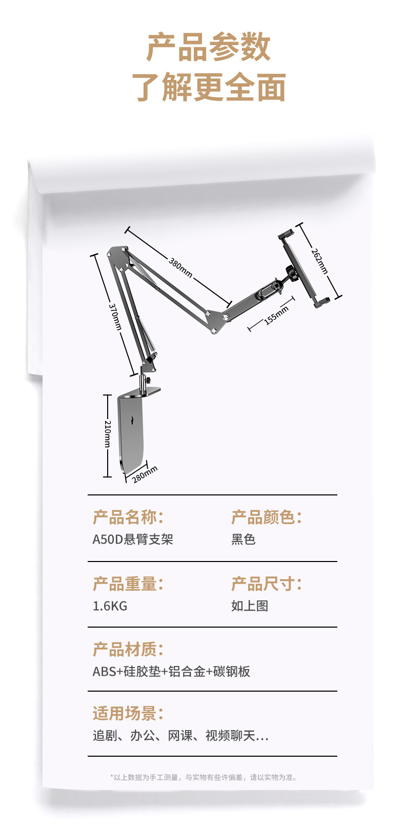 클립 프리 캔틸레버 데스크탑 침대 옆 브래킷 태블릿 드라마 추적 유물 촬영 및 녹화 비디오 라이브 침대 휴대 전화 브래킷