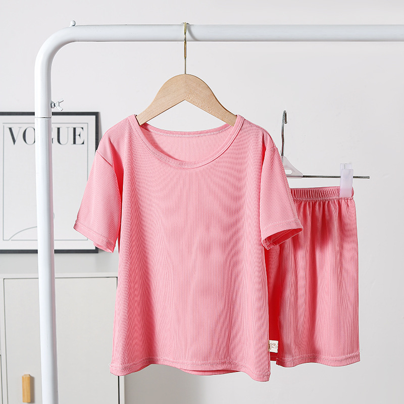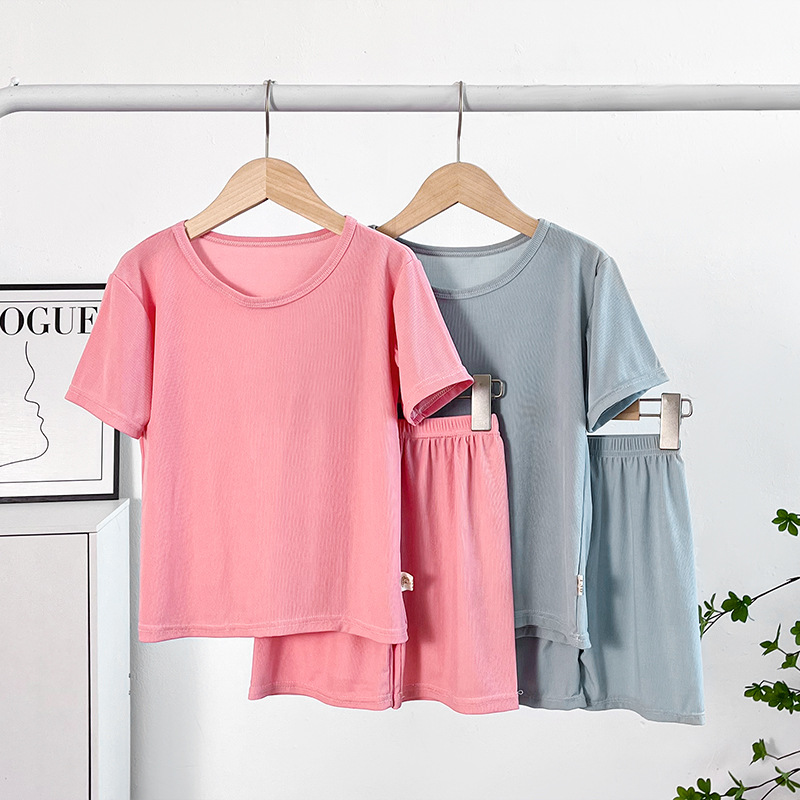 어린이 아이스 실크 잠옷 세트 여름 얇은 아기 소년과 소녀 가정 의류 2 피스 에어컨 옷 짧은 소매