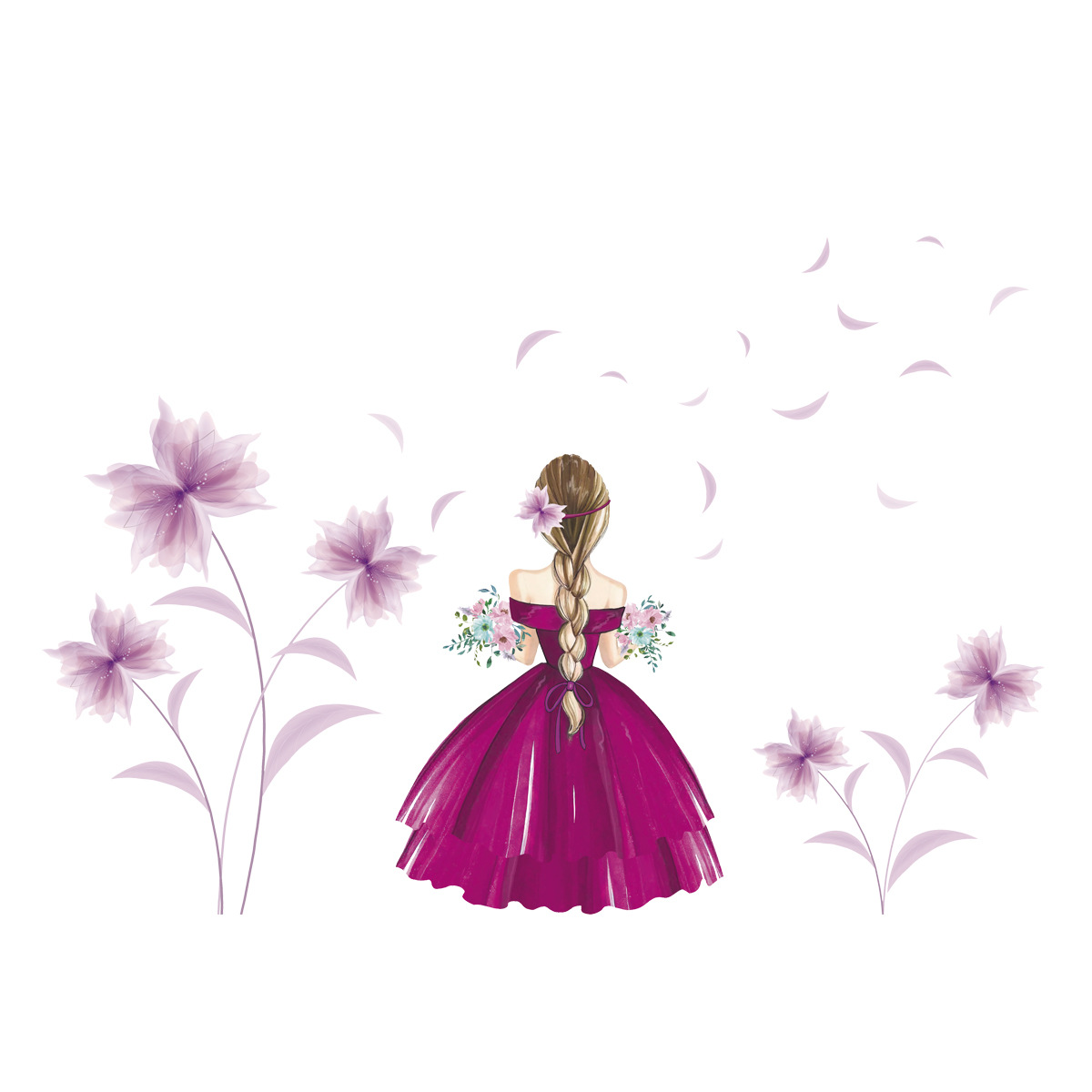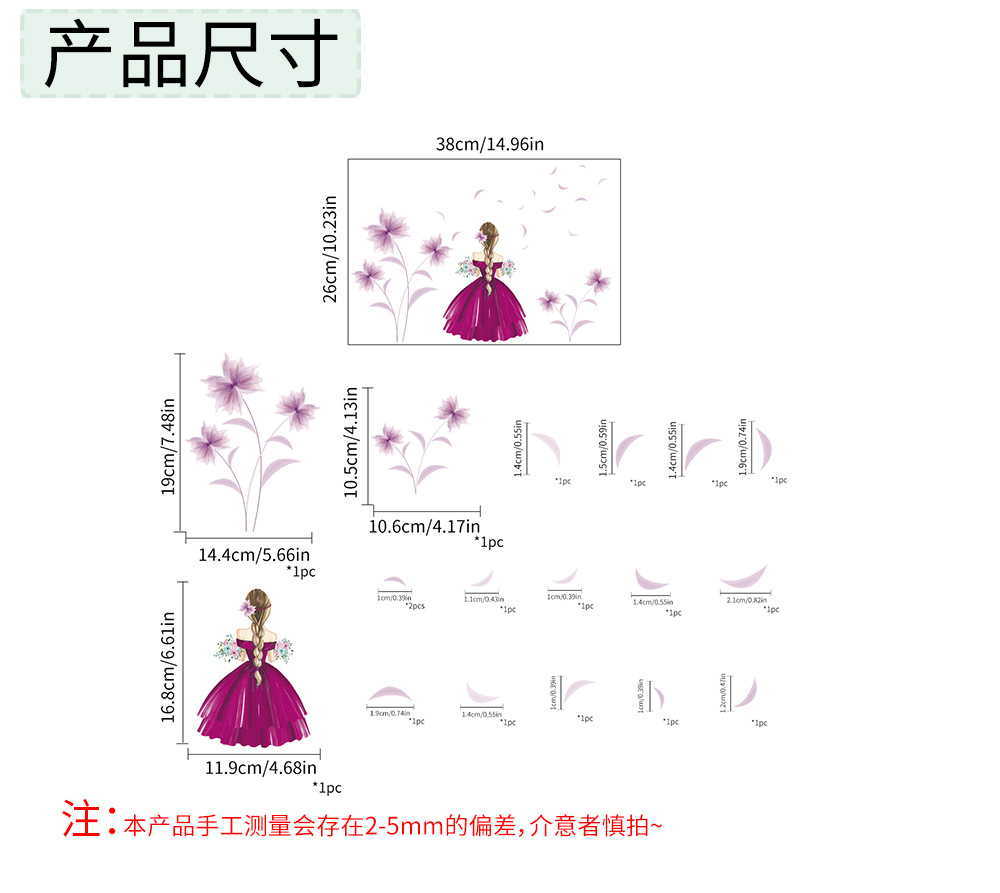 PH-QT1066 크로스 국경 꽃 벽 스티커 침실 장식 자체 접착 거실 스티커 방 배경 벽 스티커