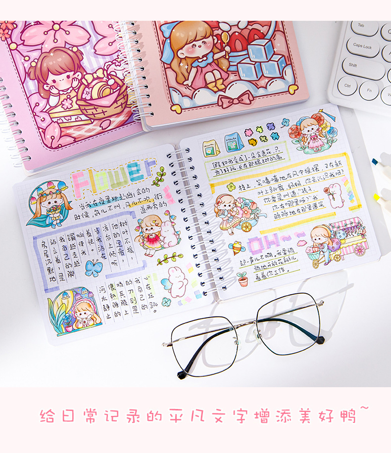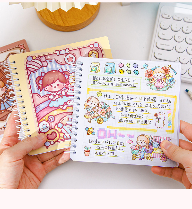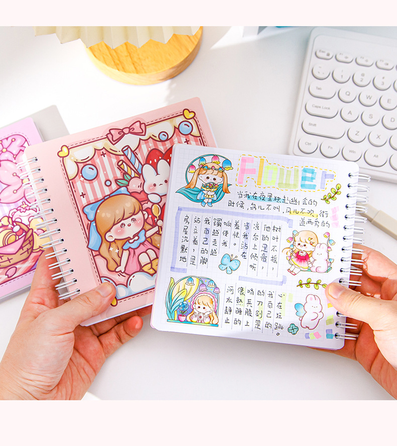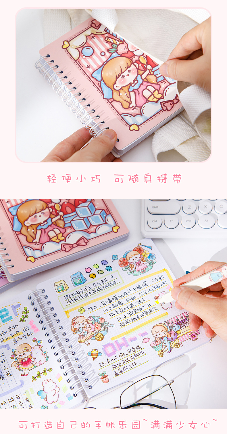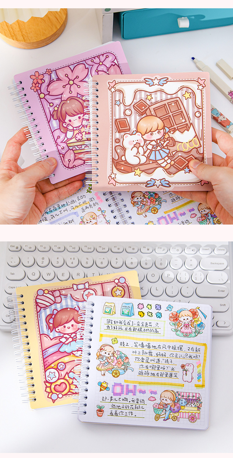 스퀘어 핸드 북 하이 컬러 가치 소녀 만화 귀여운 슈퍼 귀여운 소녀 핸드 북 코일 북 분리 가능한 노트북