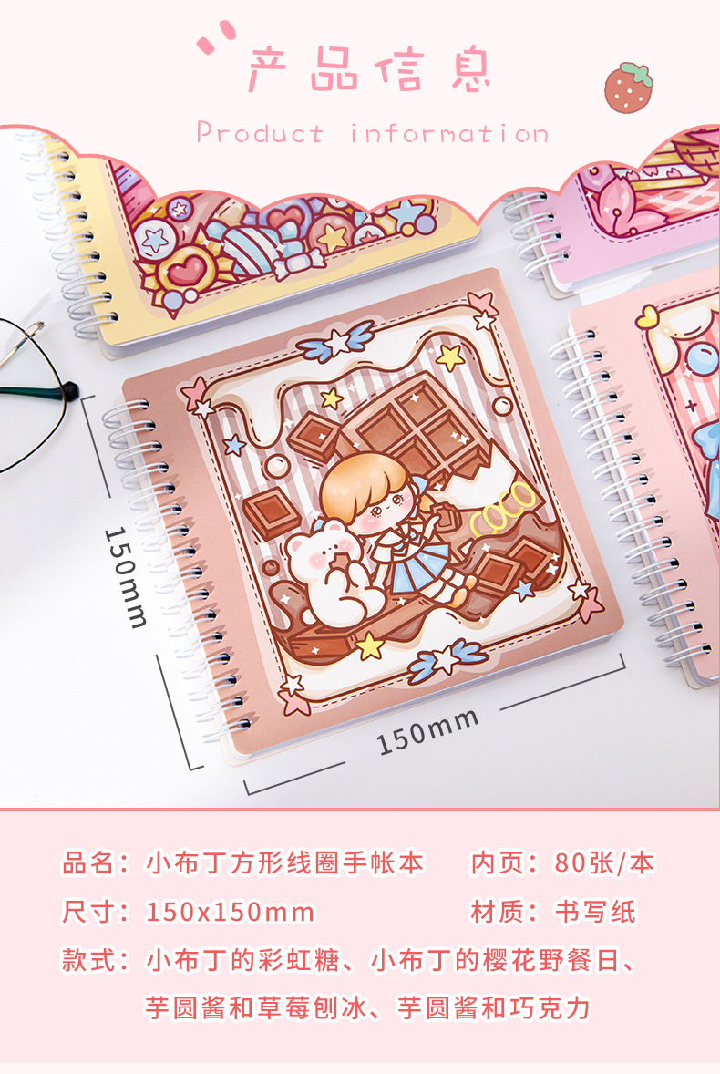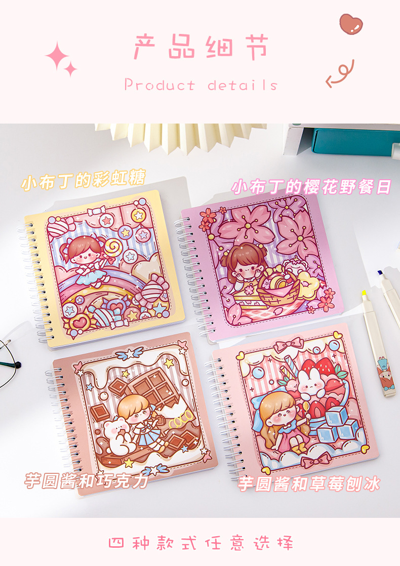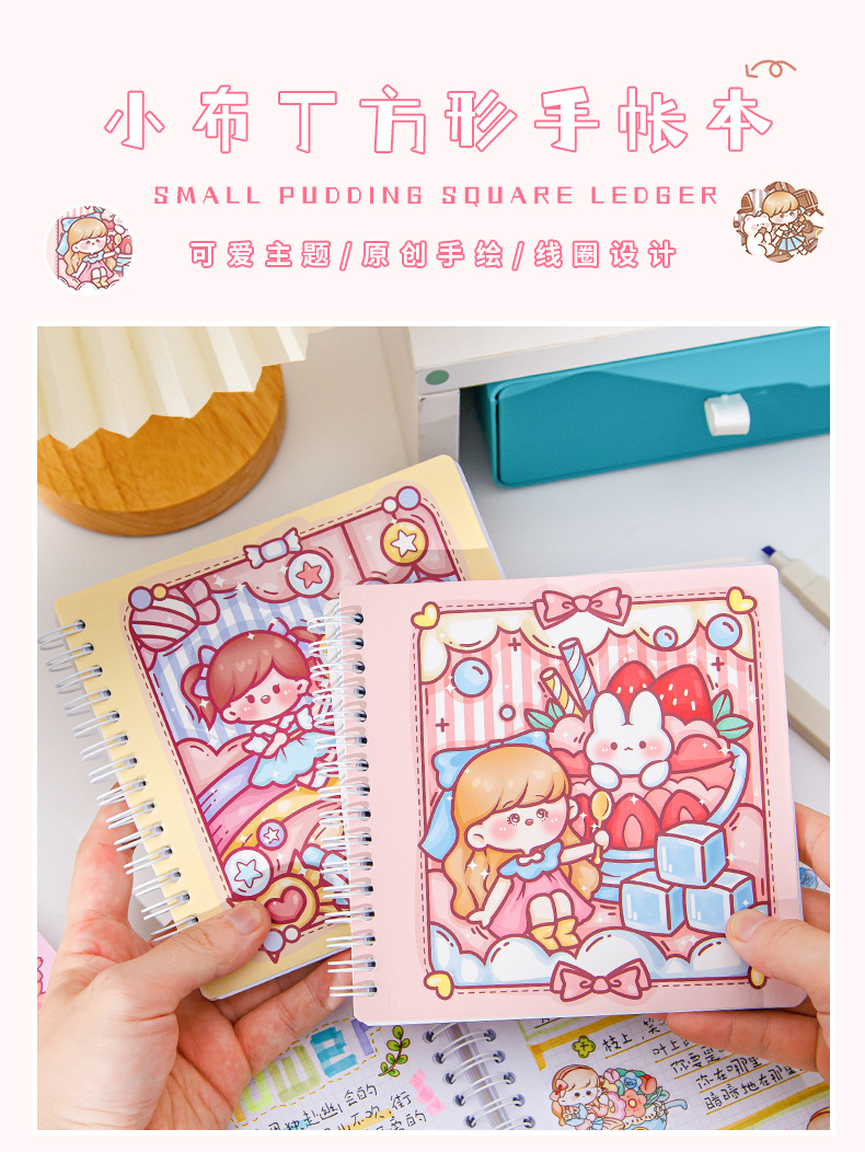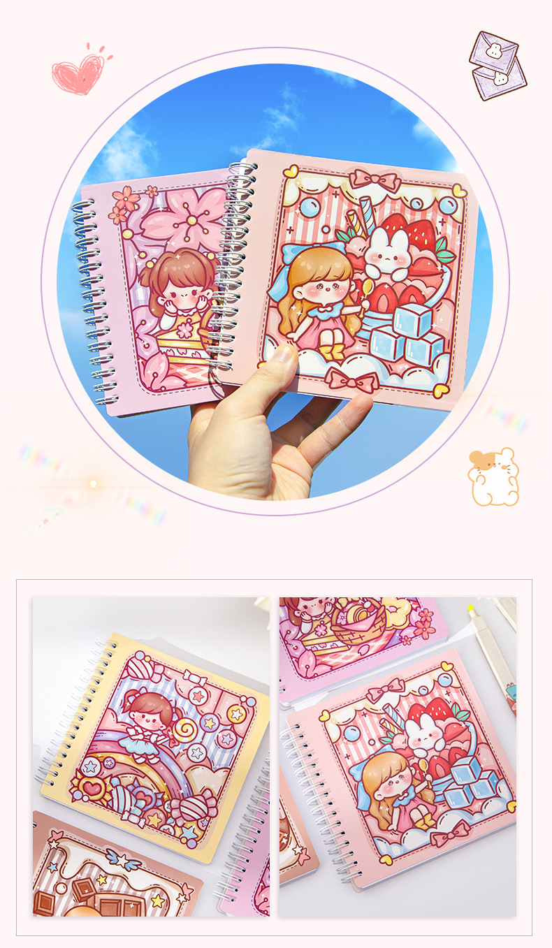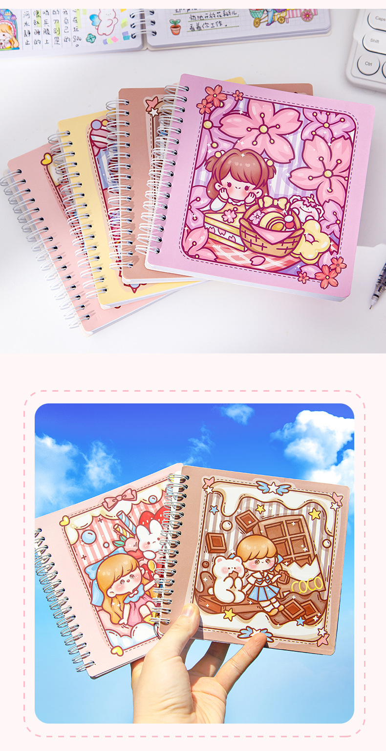 스퀘어 핸드 북 하이 컬러 가치 소녀 만화 귀여운 슈퍼 귀여운 소녀 핸드 북 코일 북 분리 가능한 노트북스토어 가기