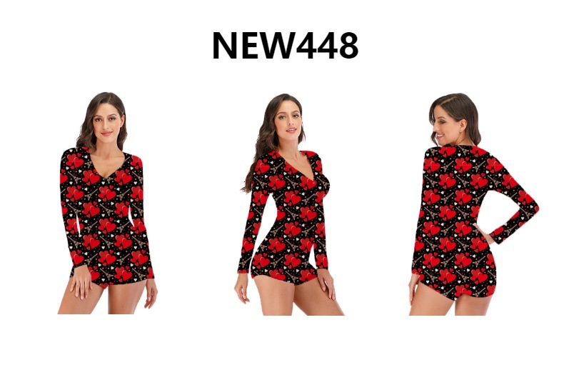 국경 간 아마존 대외 무역 발렌타인 데이 시리즈 유럽과 미국의 섹시한 성인 점프 슈트 여성용 스타킹 잠옷 가정 옷스토어 가기