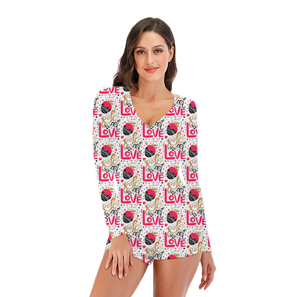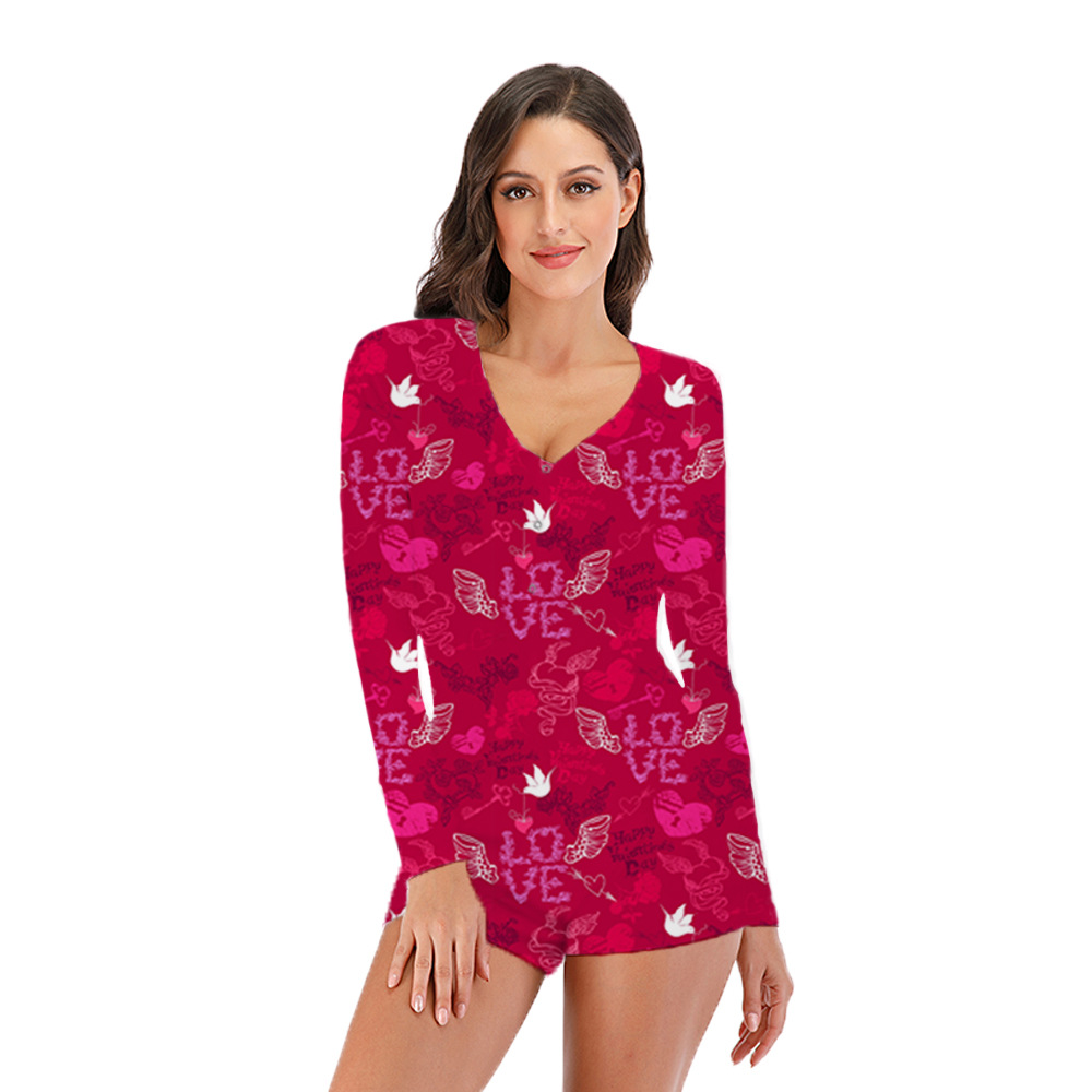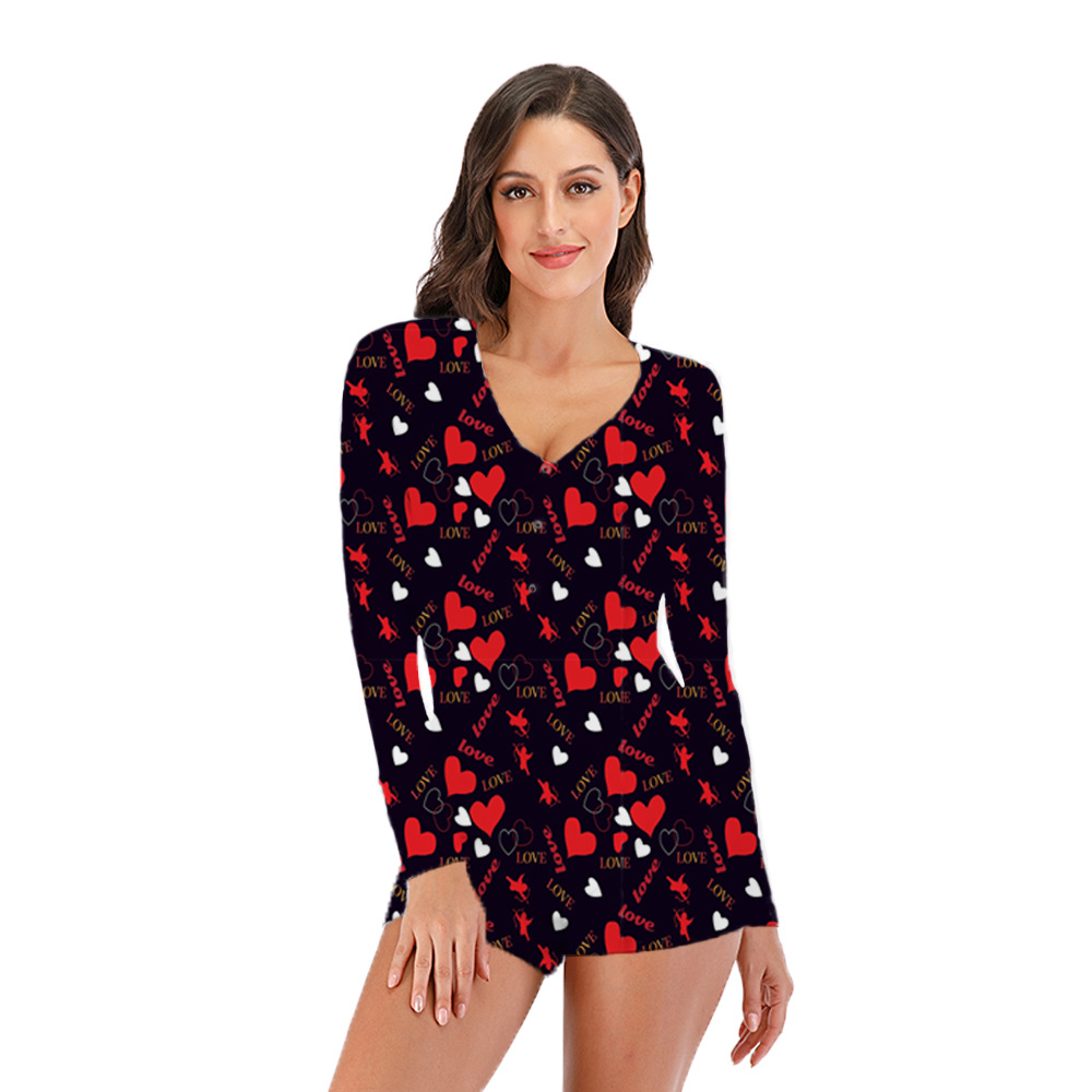국경 간 아마존 대외 무역 발렌타인 데이 시리즈 유럽과 미국의 섹시한 성인 점프 슈트 여성용 스타킹 잠옷 가정 옷