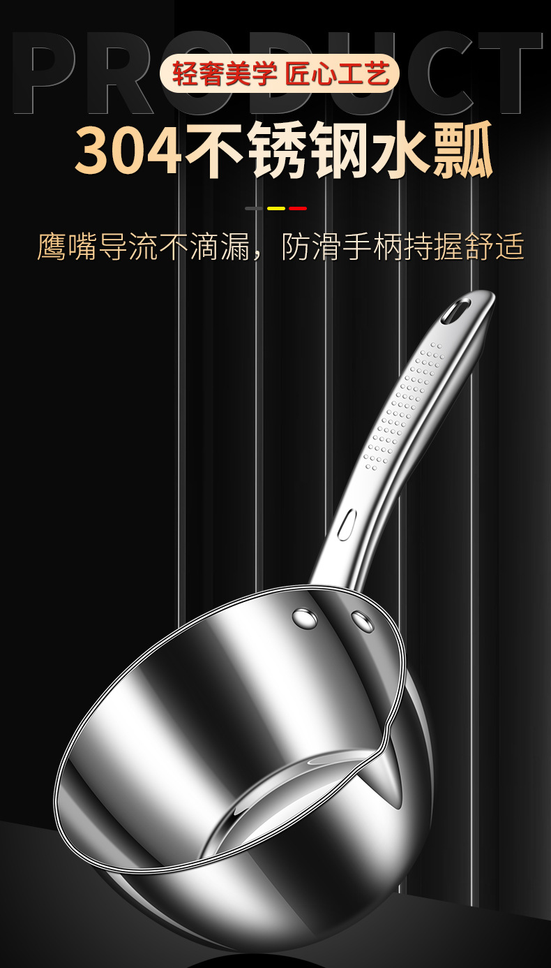 304 스테인레스 스틸 물 국자 가정용 주방 두꺼운 긴 손잡이 물 숟가락 큰 크기 물 숟가락 독수리 입스토어 가기