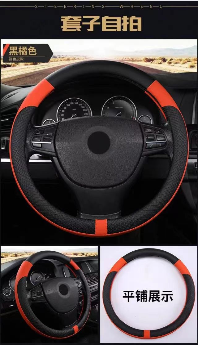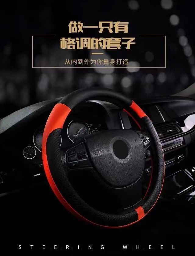 자동차 핸들 커버 풀 가죽 가죽 패턴 미끄럼 방지 4 계절 유니버설 d 자형 라운드 핸들 미끄럼 방지 땀 흡수 남성 및 여성스토어 가기