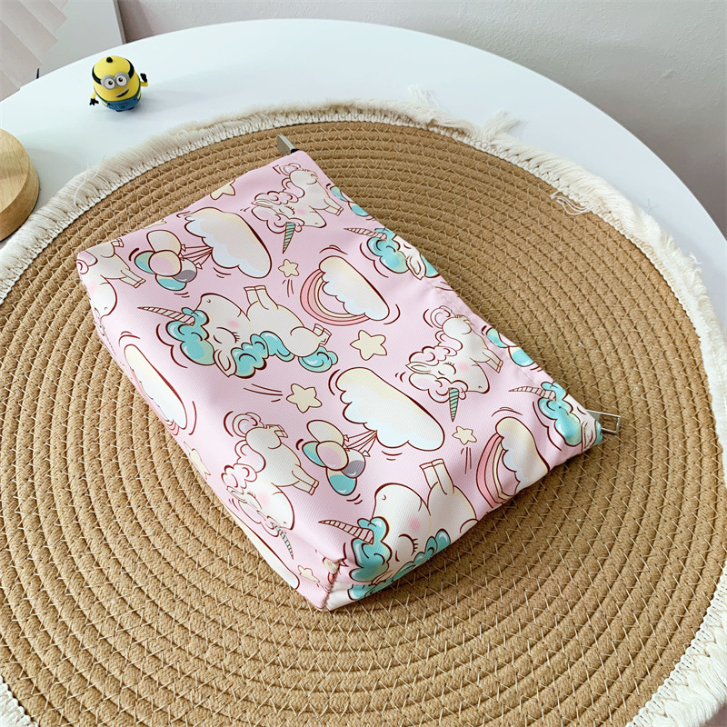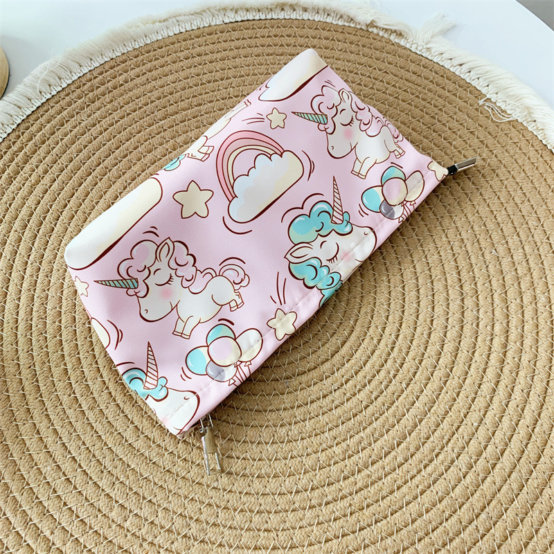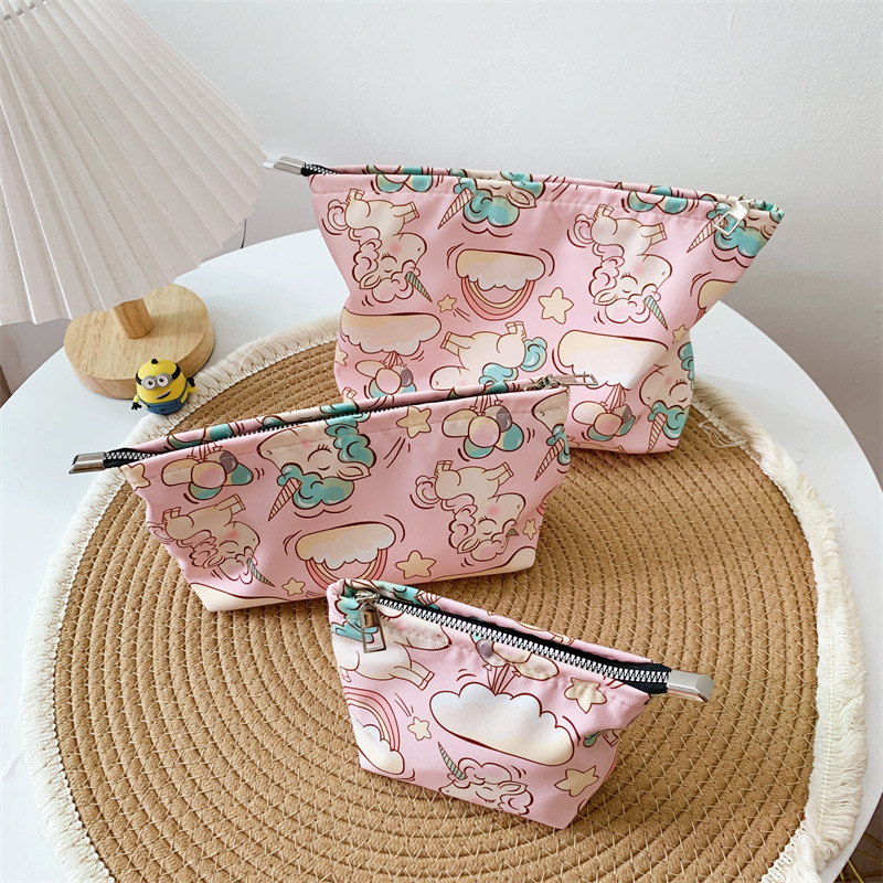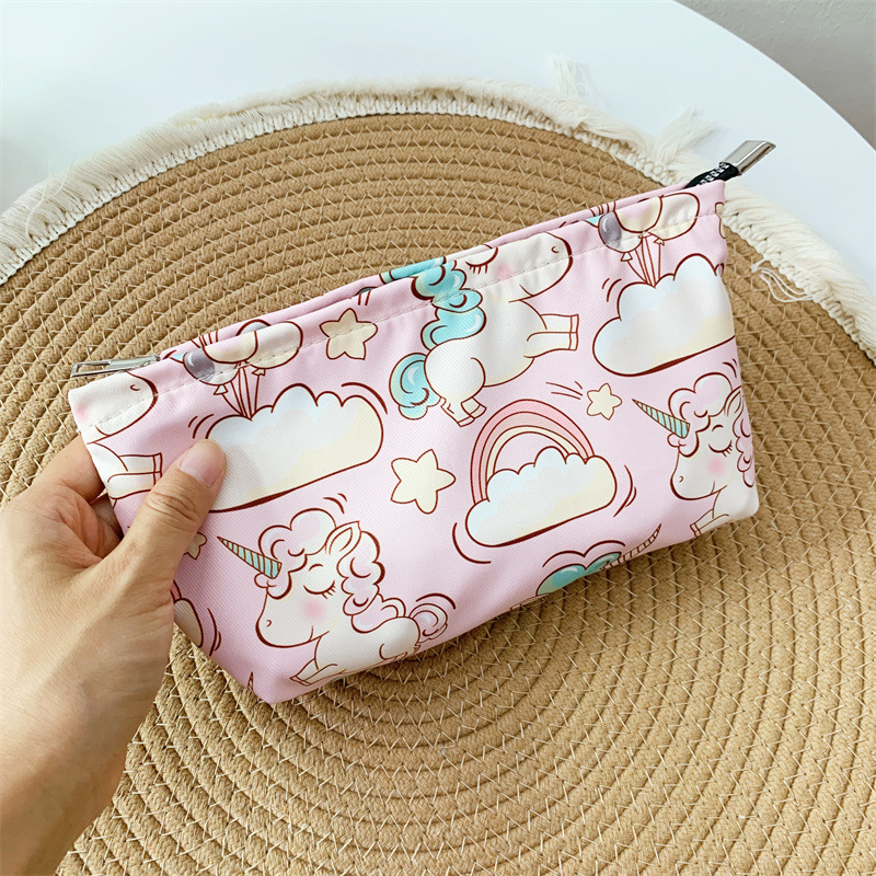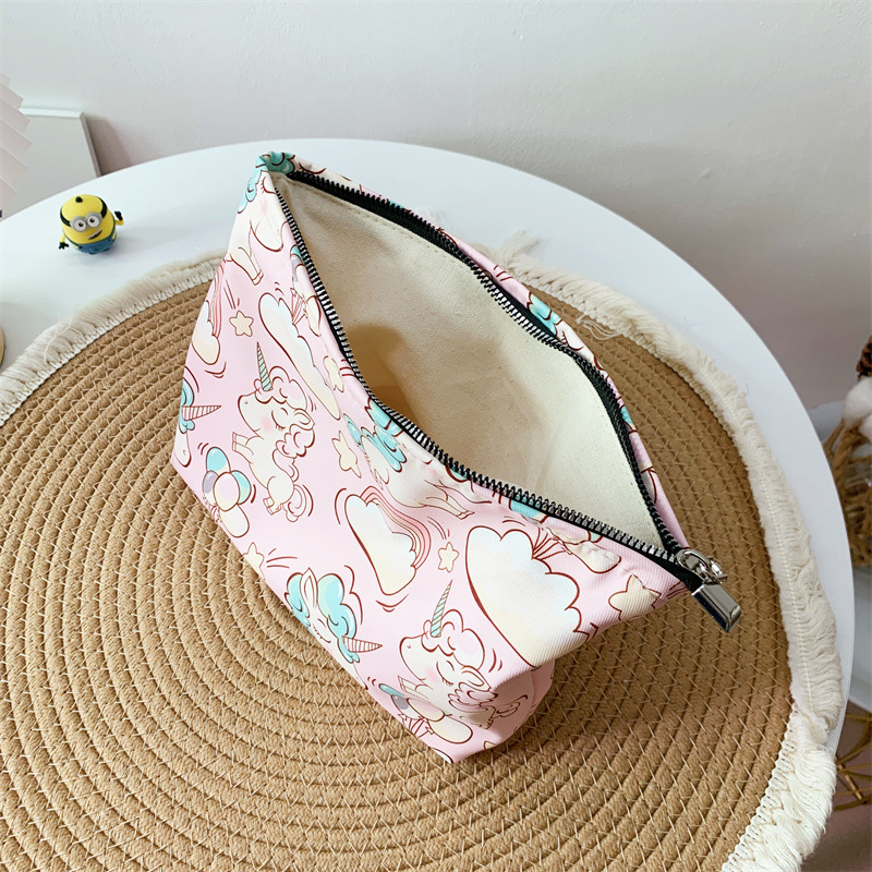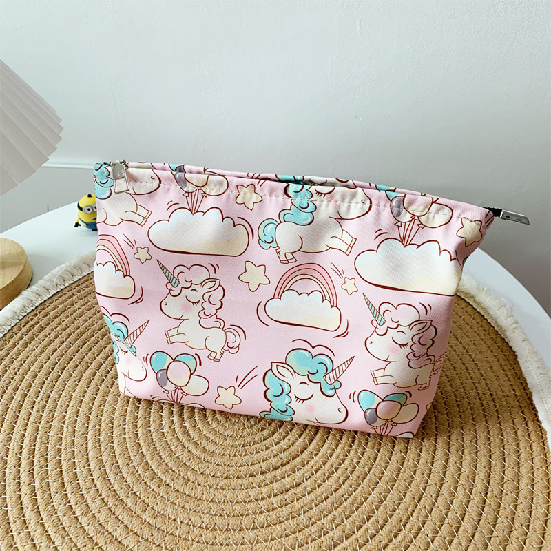 오리지널 틈새 패브릭 튀김 방지 대용량 화장품 가방 휴대용 클러치 만화 유니콘