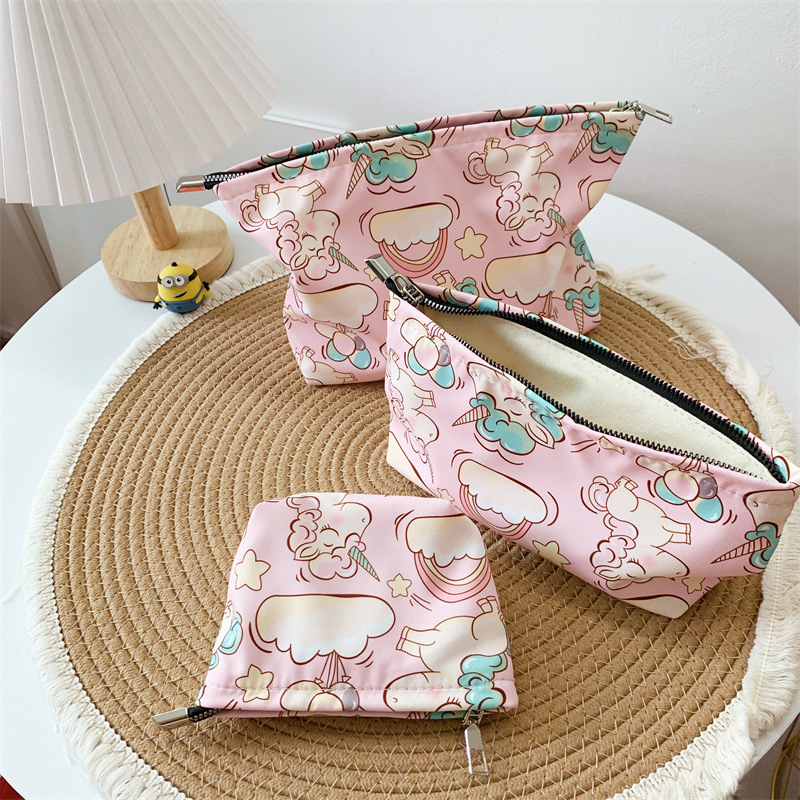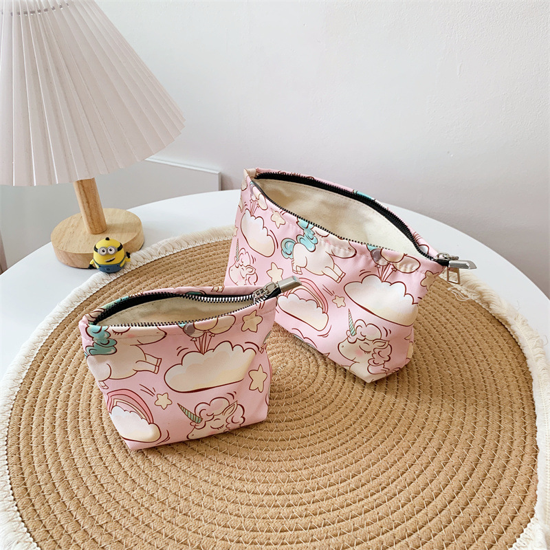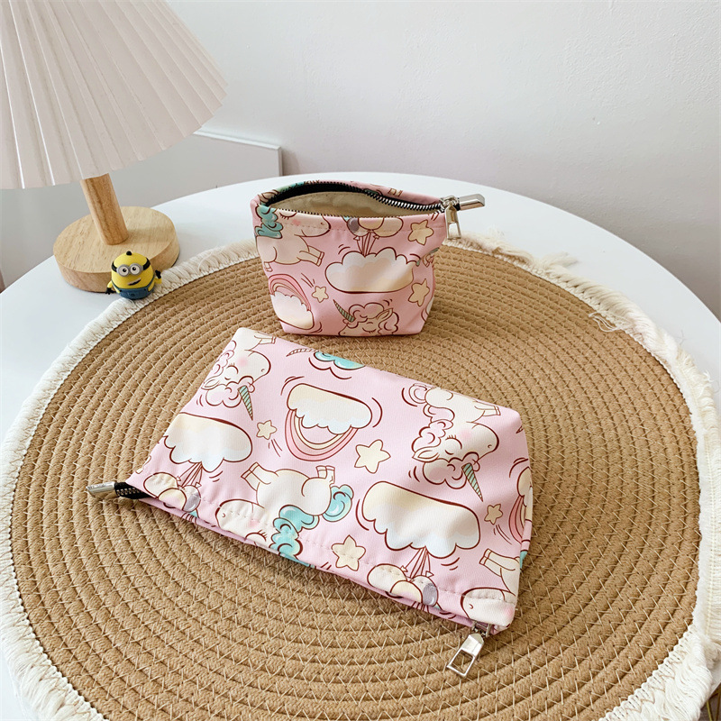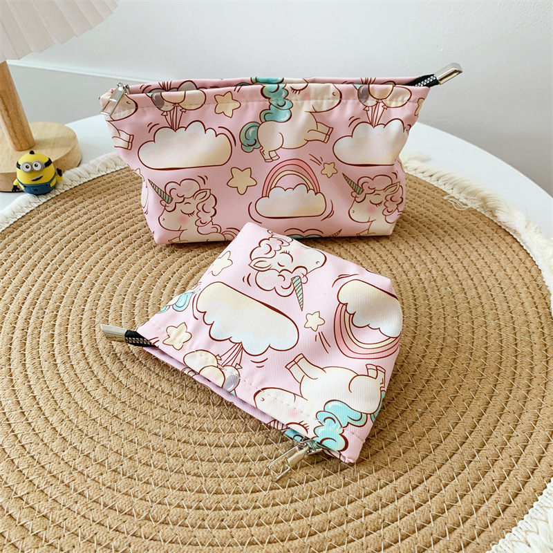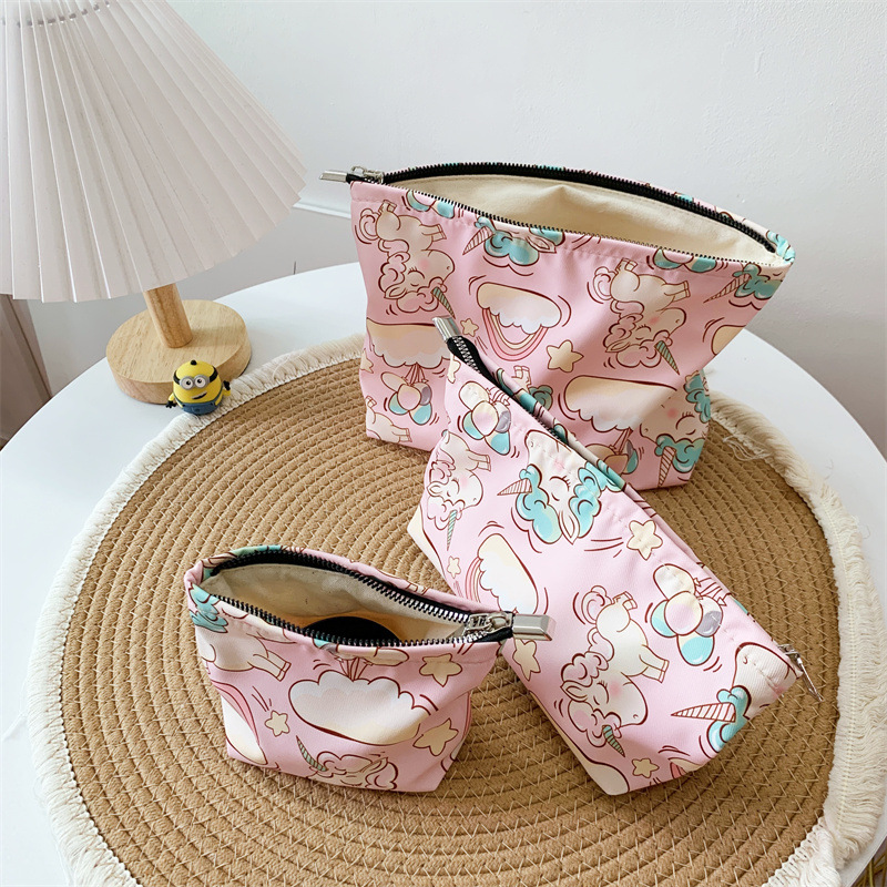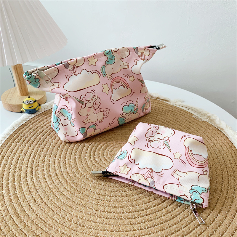 오리지널 틈새 패브릭 튀김 방지 대용량 화장품 가방 휴대용 클러치 만화 유니콘스토어 가기