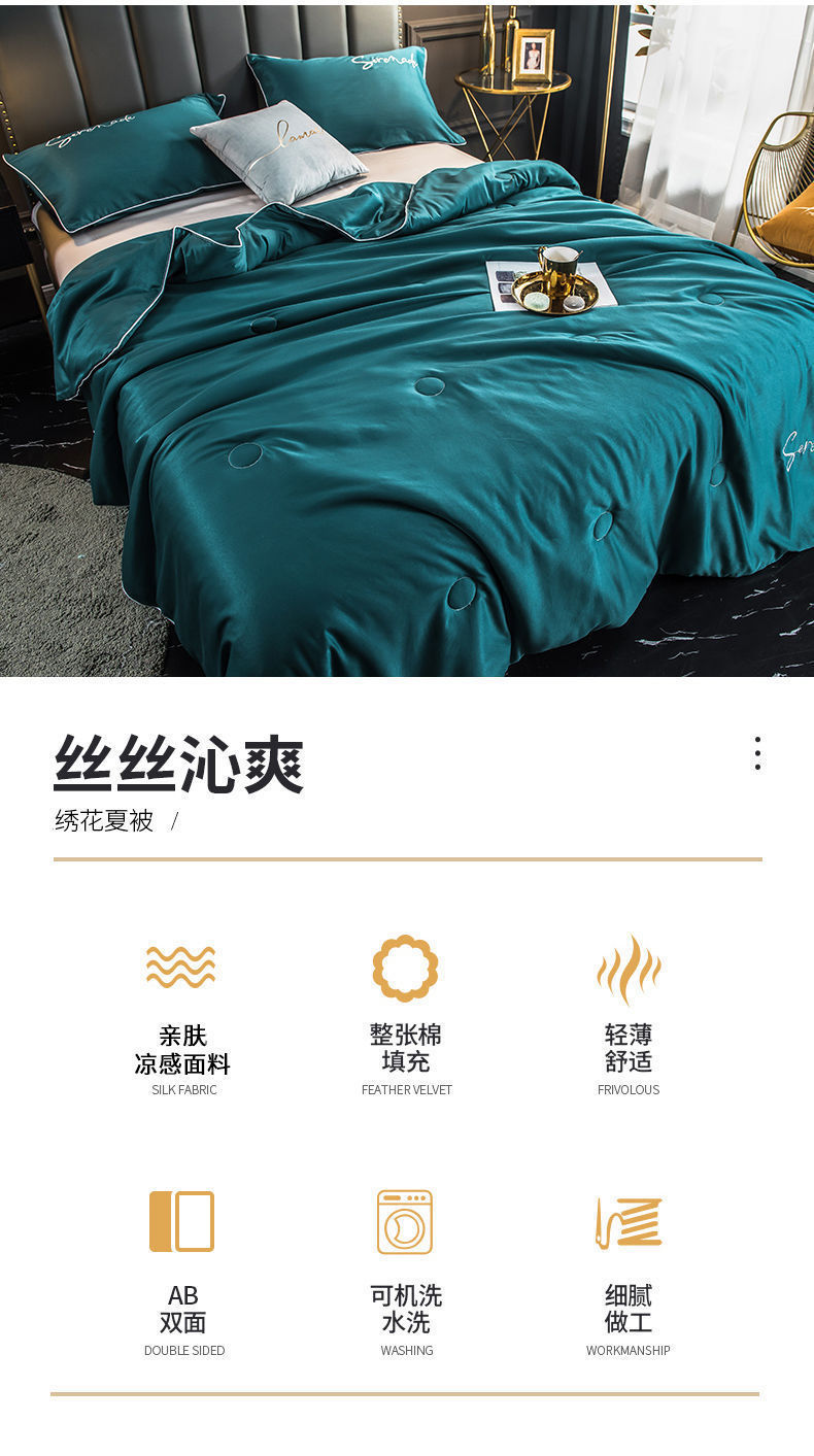 새로운 여름 자수 아이스 실크 에어컨 이불 여름 쿨 이불 학생 기숙사 더블 여름 얇은 이불스토어 가기