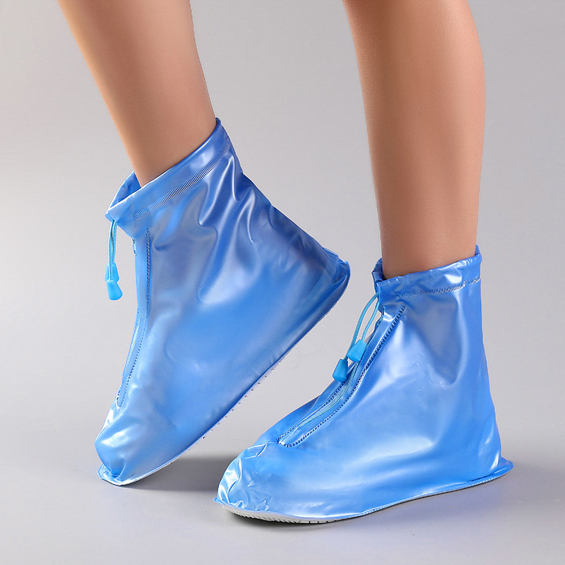 방수 신발 커버 두꺼운 내마모성 미끄럼 방지 신발 커버 지퍼 남여 하이 탑 방수 야외 하이킹 비 장비