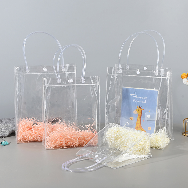 재고 도매 pvc 투명 핸드백 꽃 가방 손 선물 가방 방수 스냅 버튼 휴대용 3 개 세트