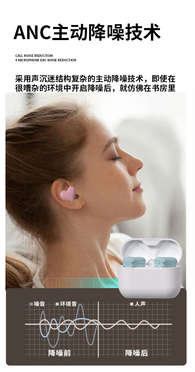 하트버즈 일본 하트 모양 블루투스 이어폰 고급 인이어 심플 하트 무선 이어폰 고음질