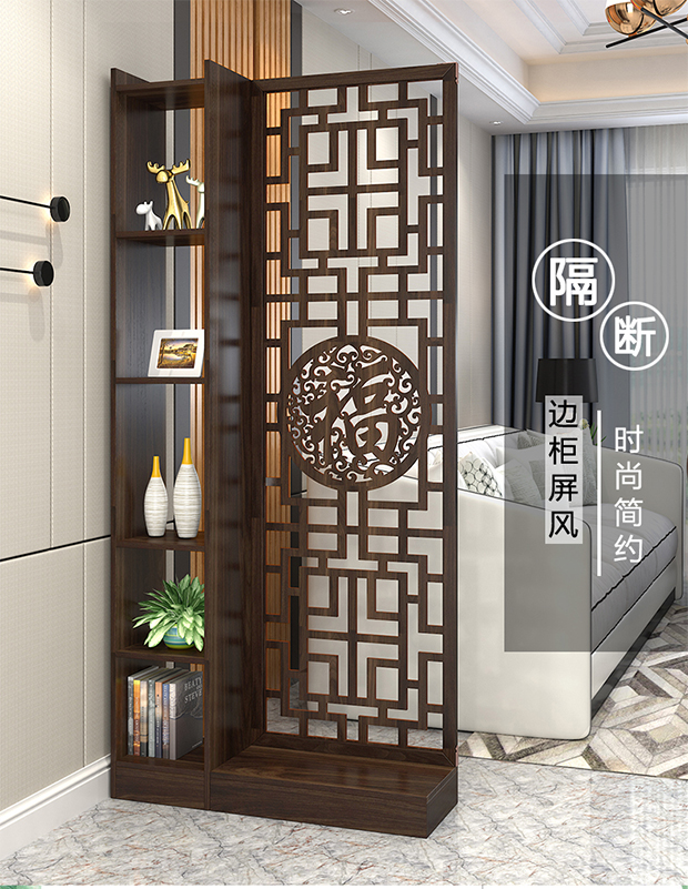 새로운 중국 스타일 거실 화면 파티션 장식 가정 양면 간단한 현대 현관 홀 입구 단단한 나무 입구 캐비닛스토어 가기