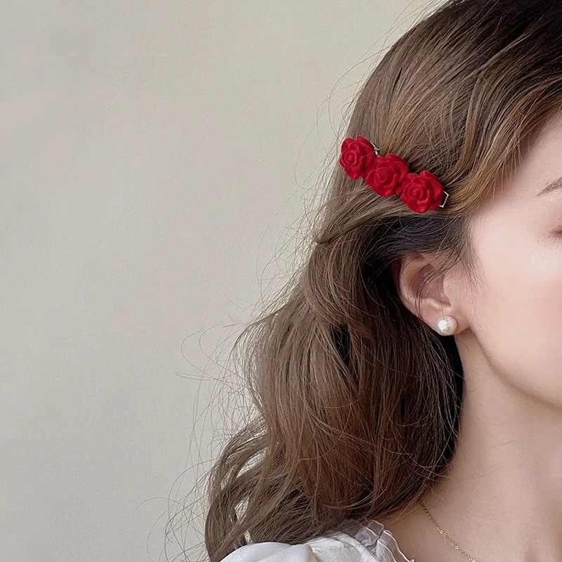 빈티지 레드 벨벳 장미꽃 머리핀, 소녀, 신부, 앞머리핀, 옆머리핀, 땋은 머리핀