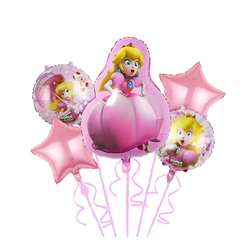 크로스 국경 마리오 게임 알루미늄 필름 풍선 복숭아 공주 만화 모양 어린이 생일 파티 풍선 도매