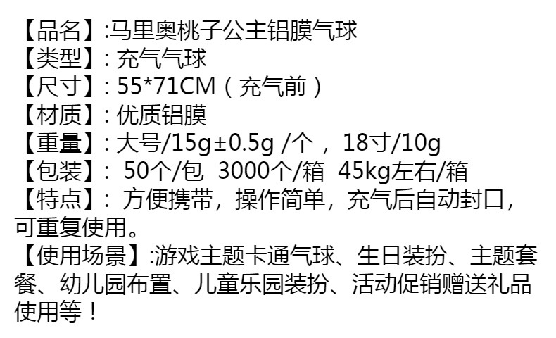 크로스 국경 마리오 게임 알루미늄 필름 풍선 복숭아 공주 만화 모양 어린이 생일 파티 풍선 도매스토어 가기