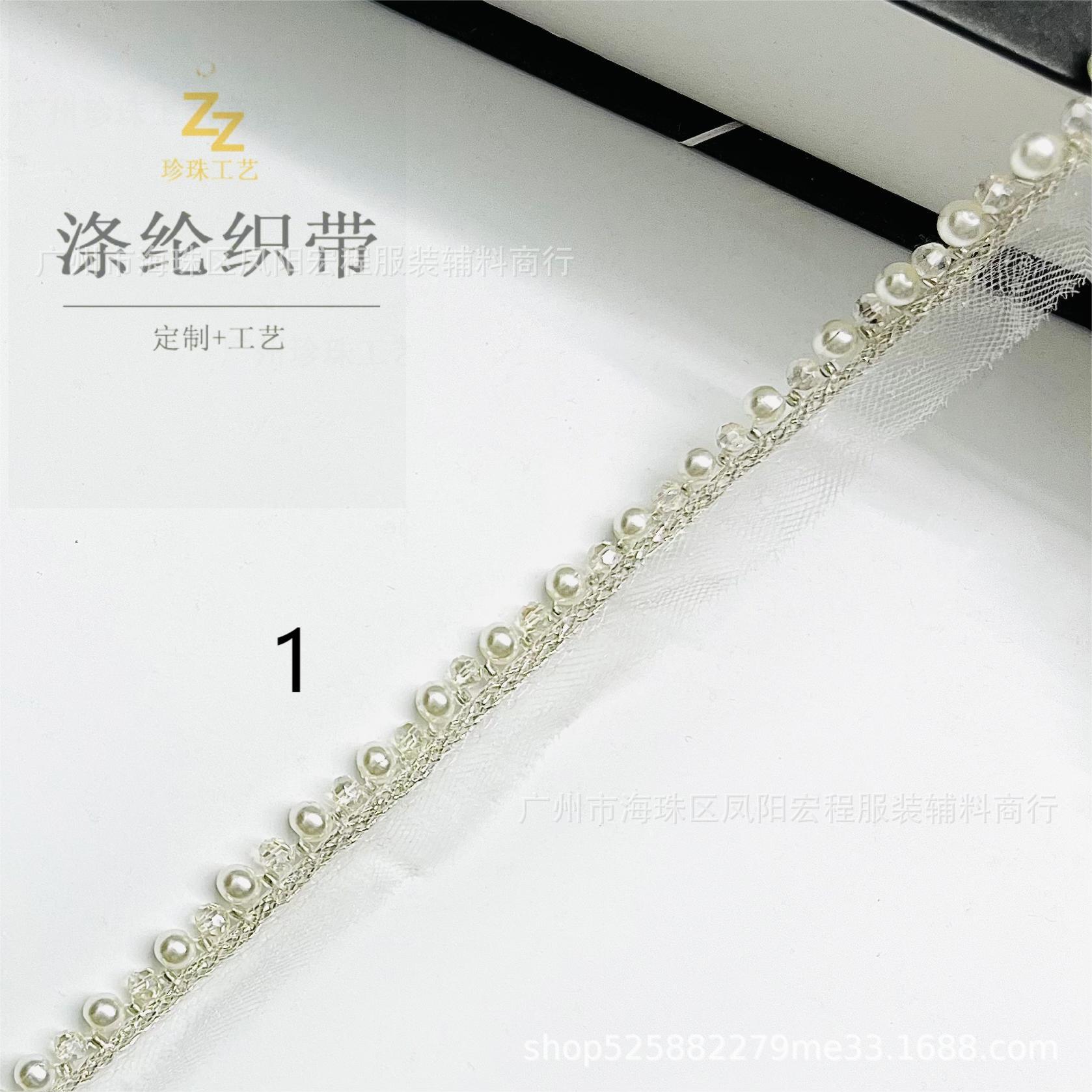 진주 크리스탈 리본 의류 액세서리 수제 페르시 진주 장식 레이스 폴리에스터 재고 도매 여성 의류스토어 가기