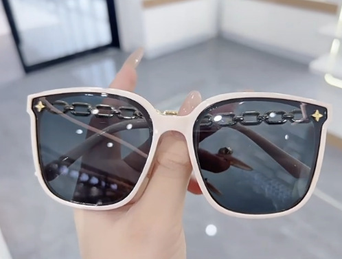 하이 엔드 선글라스 여성의 얼굴 작은 2024 새로운 체인 다리 별 선글라스 큰 얼굴 얇은 검은 색스토어 가기