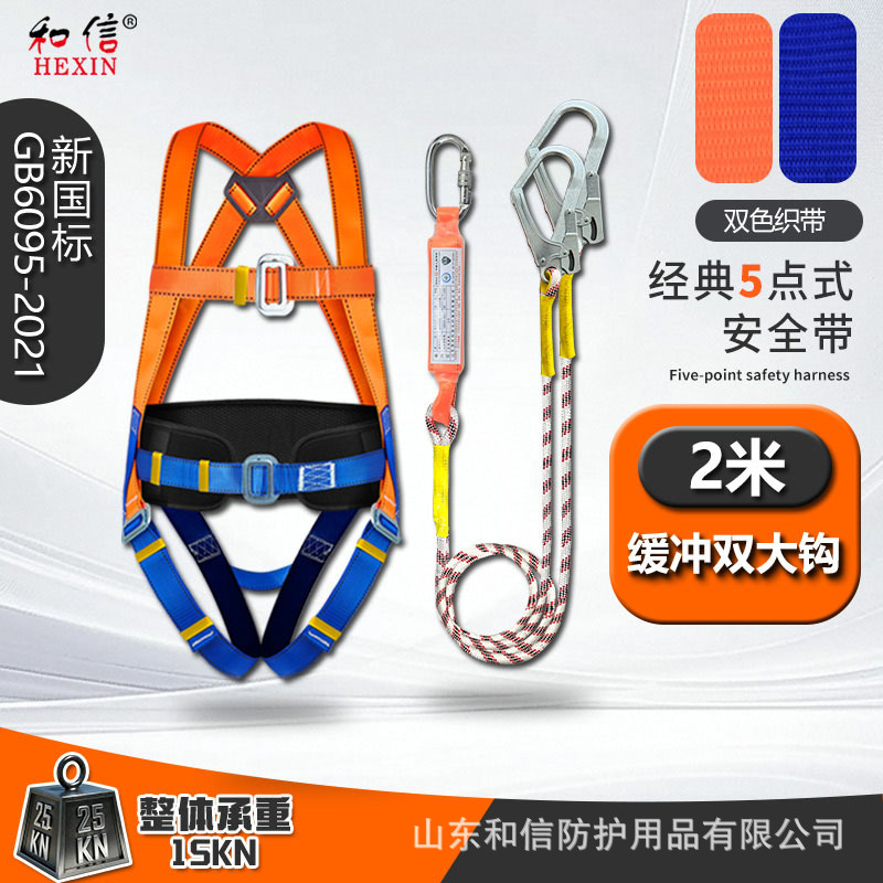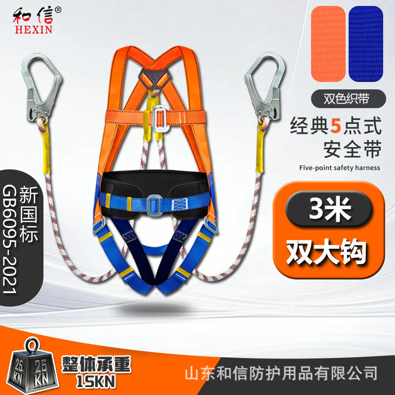 국가 표준 5점식 안전벨트, 이중 대형 후크, 추락 방지 안전줄, 완충 패키지, 전력 공급 고공 작업용 안전벨트스토어 가기