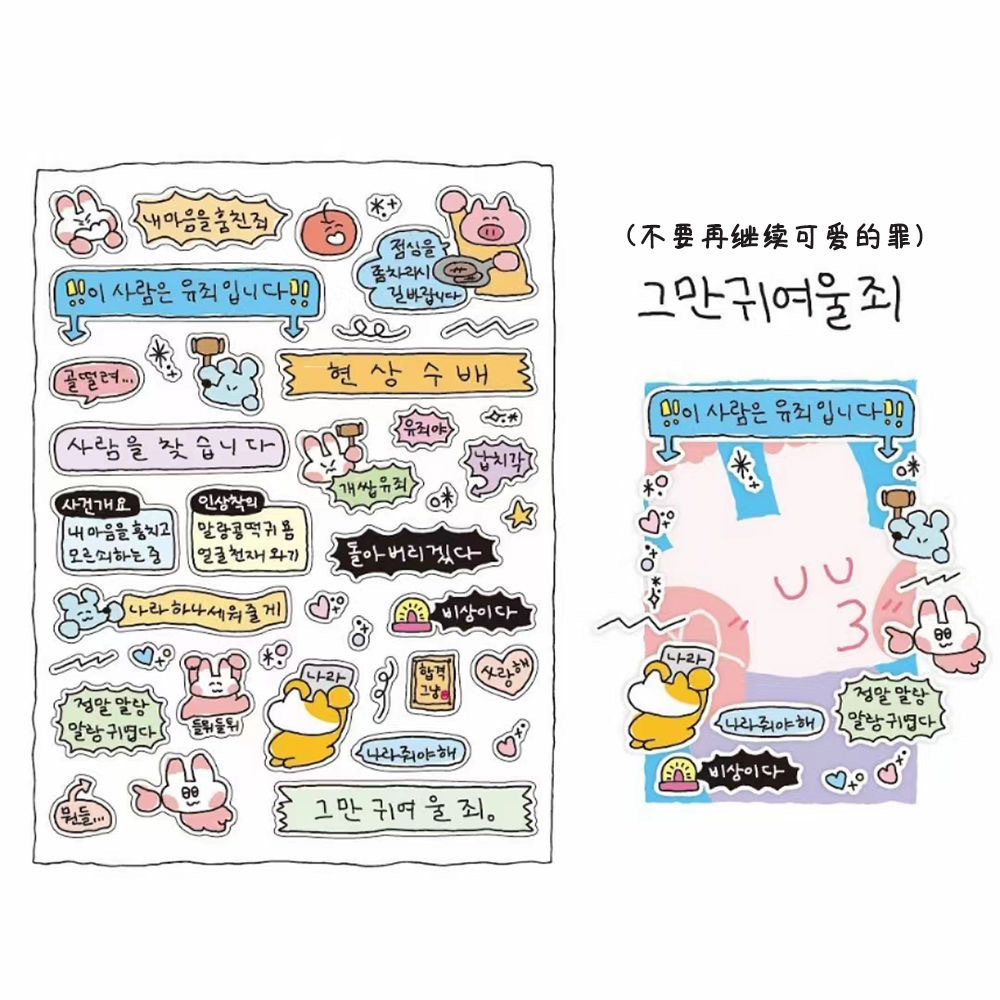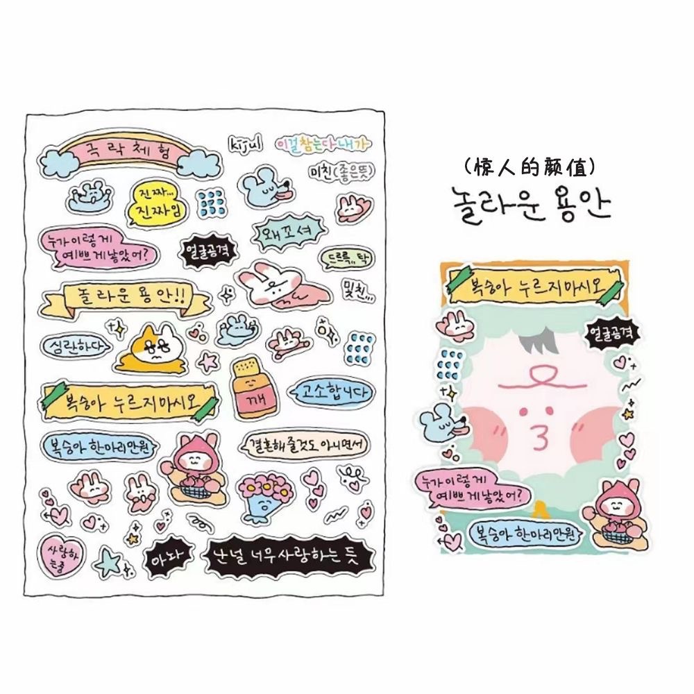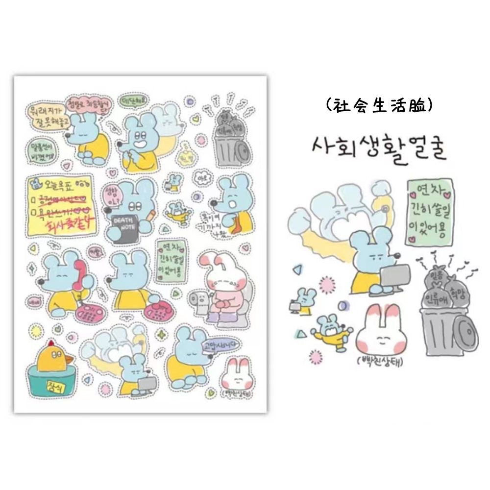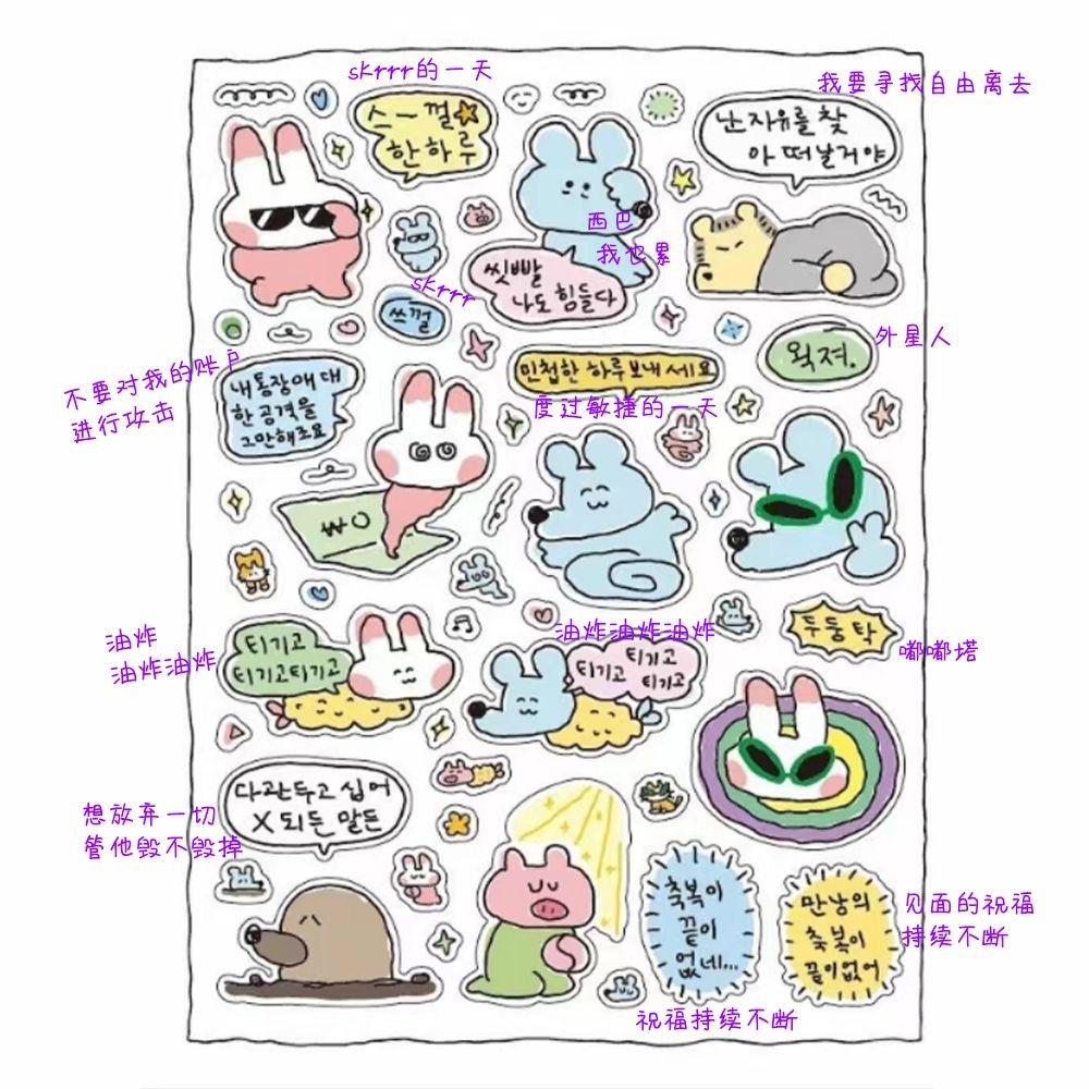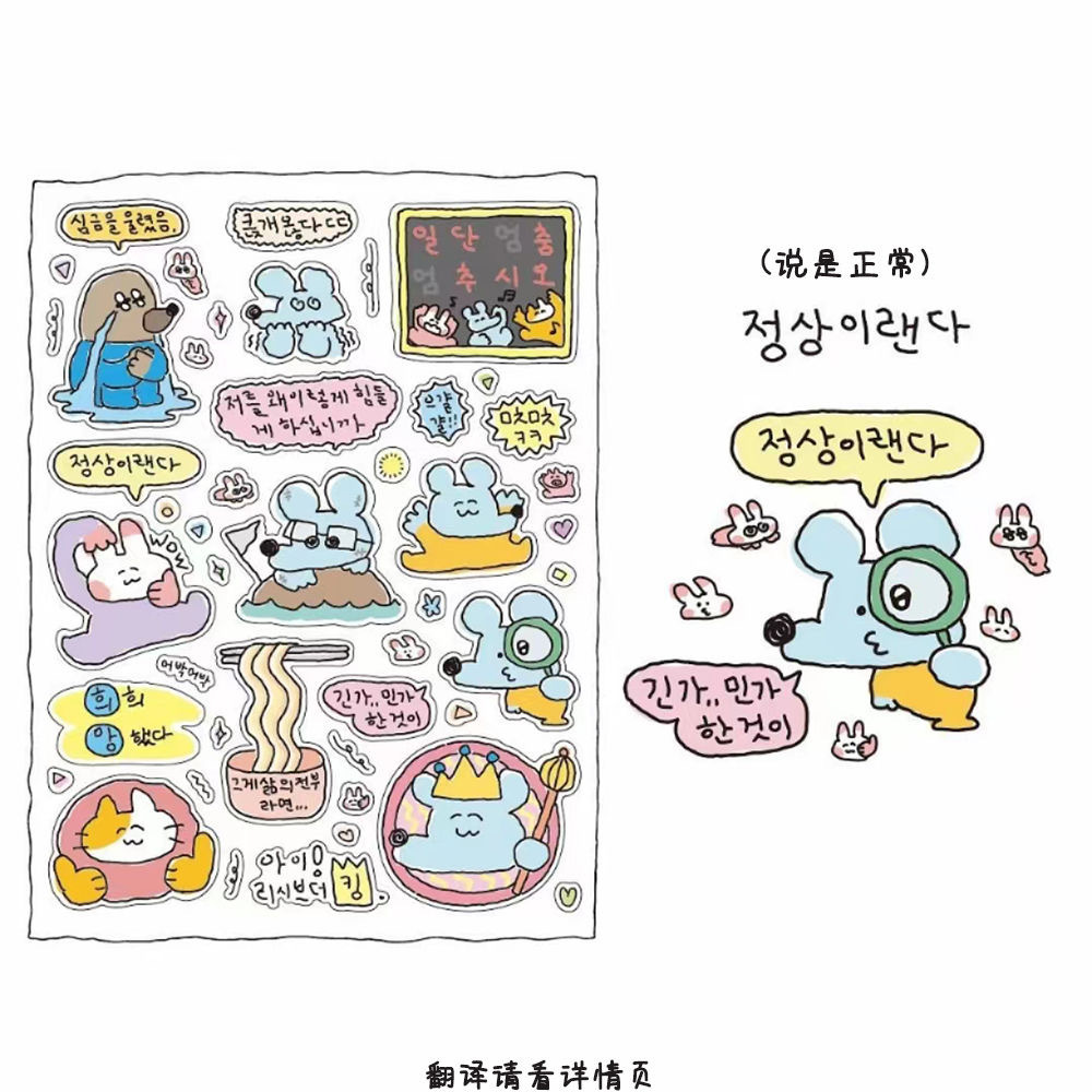 낙서 마우스 컬렉션 귀여운 한국어 교체 기능 만화 핸드북 스티커 구벤 소재 스티커스토어 가기
