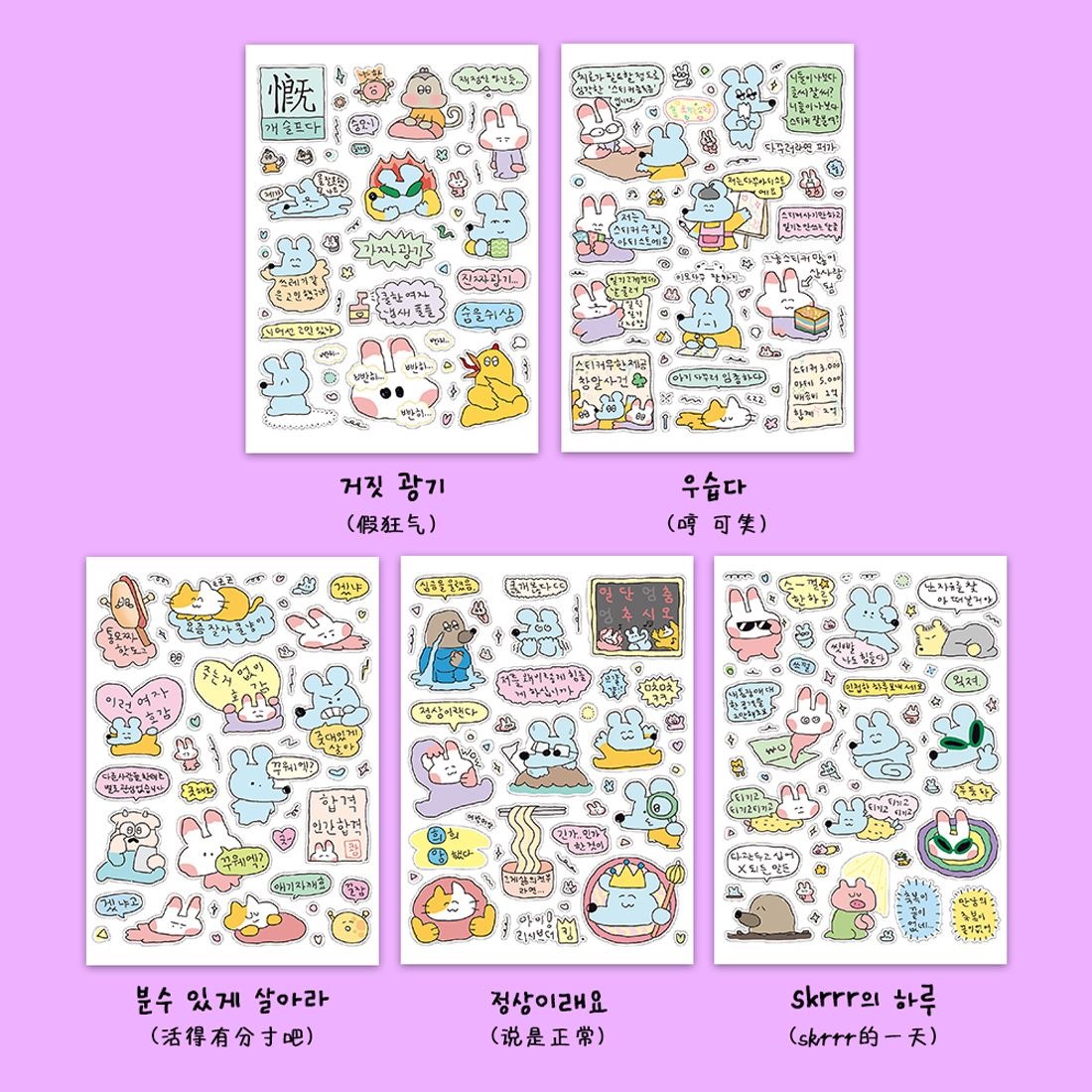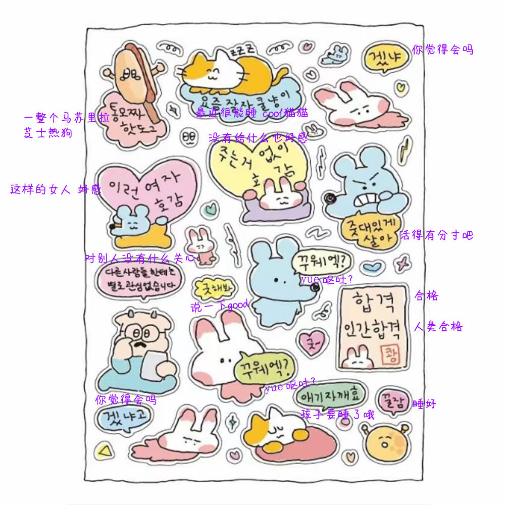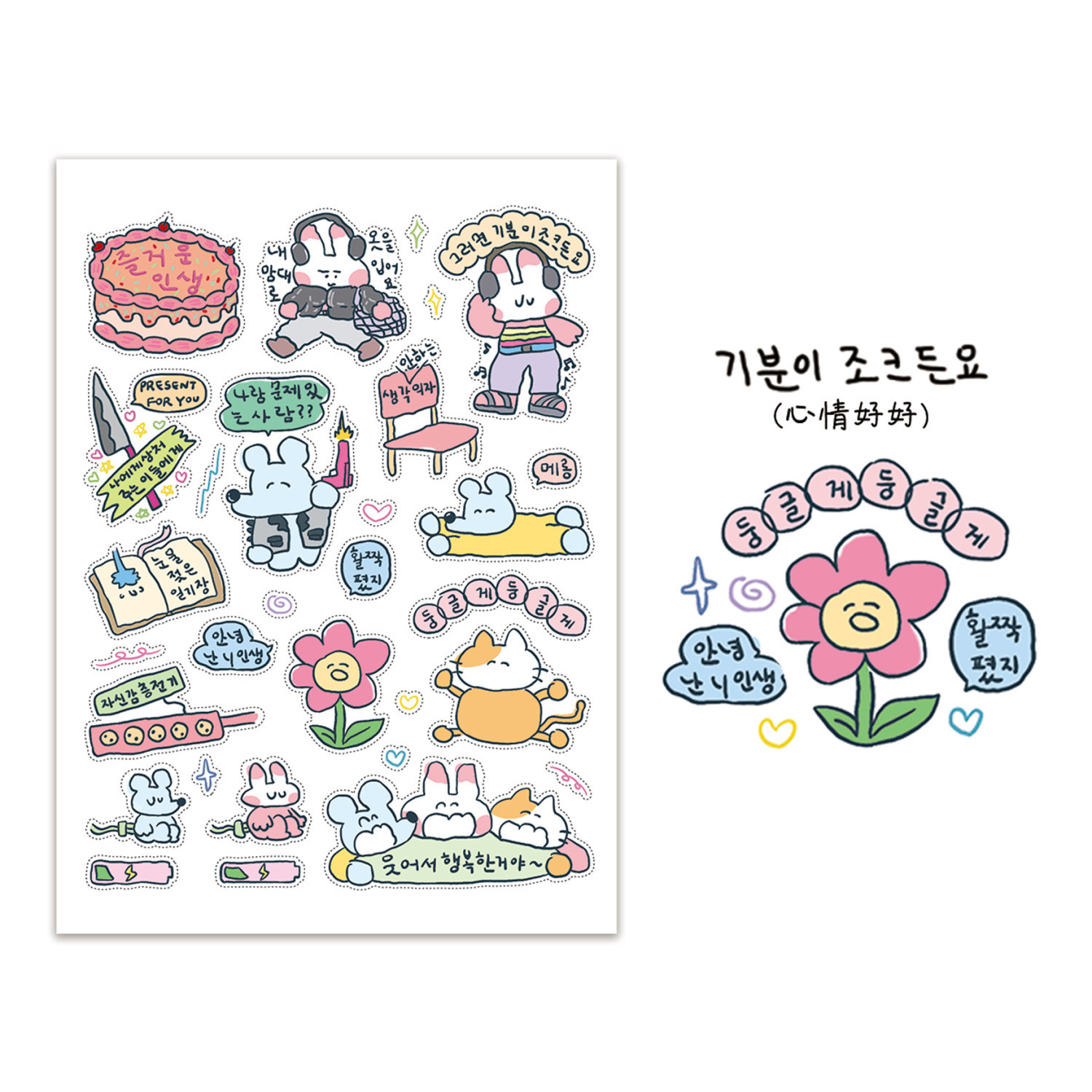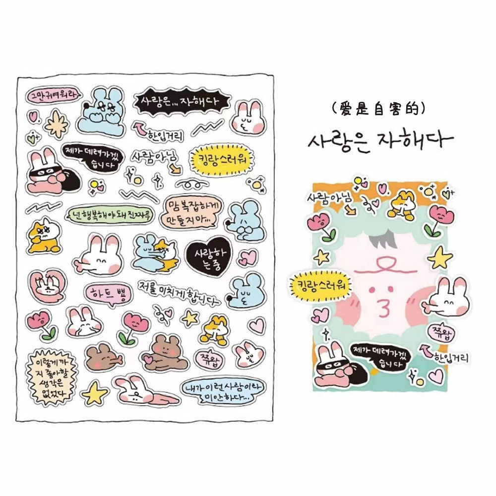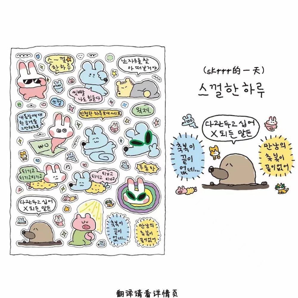 낙서 마우스 컬렉션 귀여운 한국어 교체 기능 만화 핸드북 스티커 구벤 소재 스티커스토어 가기